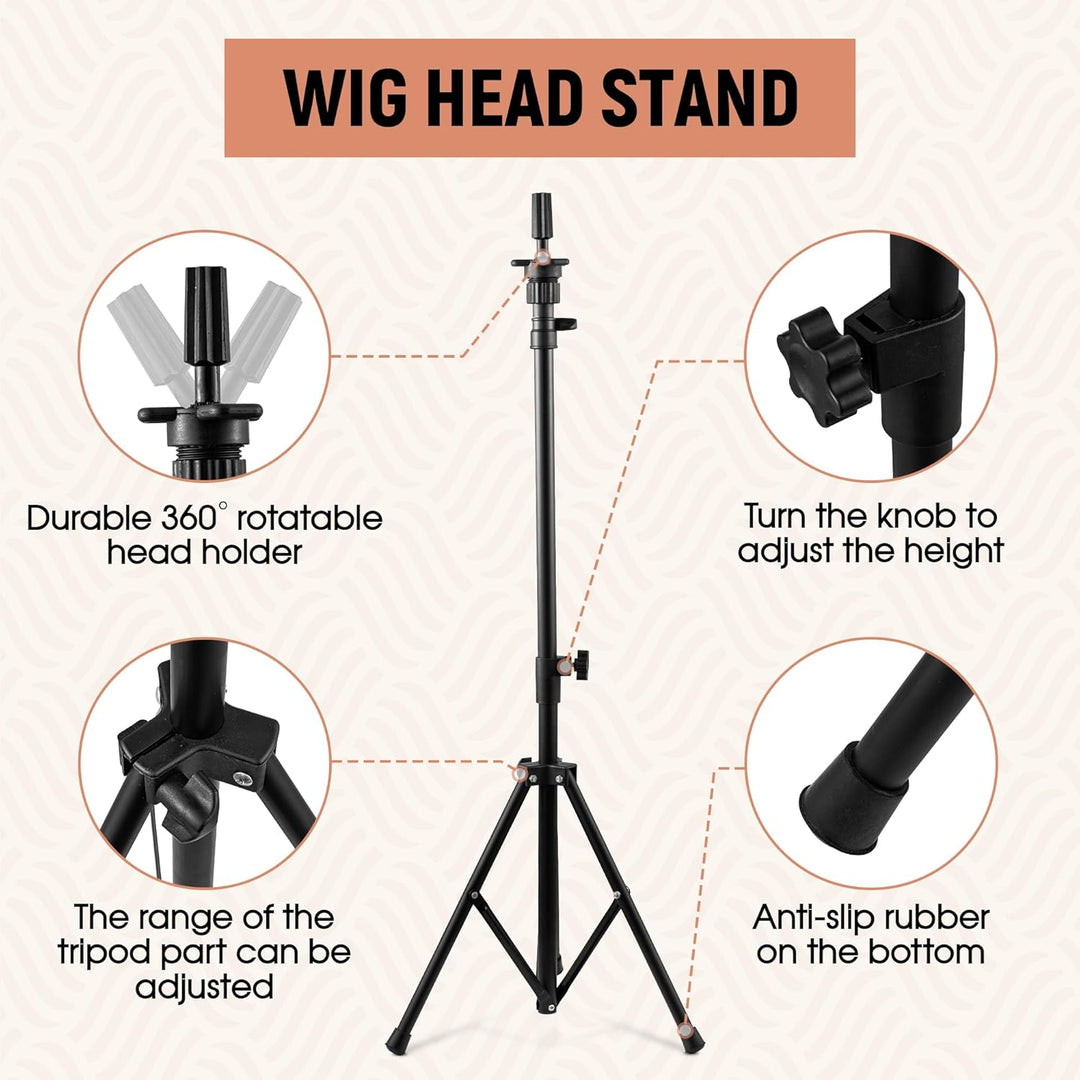 • 【Wig Head and Stand Set】Our wig stand set already contains a 23" manikin head and wig tripod stand, with a range of useful wig-making accessories,includes wig caps,wig clips,t-pins,c needles,carrying bag,wig brush.Perfect for hairdressing .