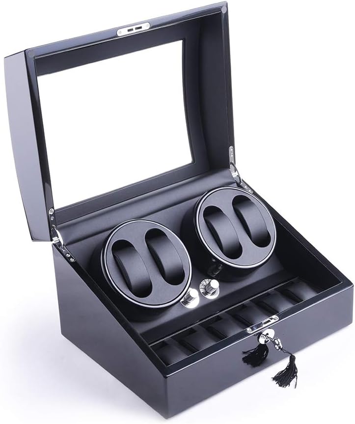 - 【Grosse Kapazität】Die uhrenbeweger für automatikuhren mit 4 Wicklerschritten plus 6 Staufächern zum Sammeln Ihrer geliebten Uhren Das kompakte und raffinierte Design kann Reibung eliminieren, um Kratzer zwischen den Uhren zu vermeiden.