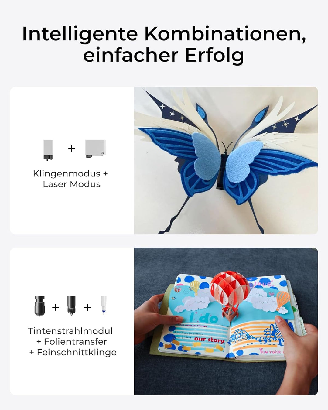 - Unbegrenzte Kreativität: Die xTool M1 Ultra verarbeitet über 1000 Materialien, von Vinyl bis Holz. Egal, ob Sie T-Shirts, Geschenke oder Dekorationen basteln, diese Maschine bietet die Möglichkeit, zu experimentieren und zu innovieren.