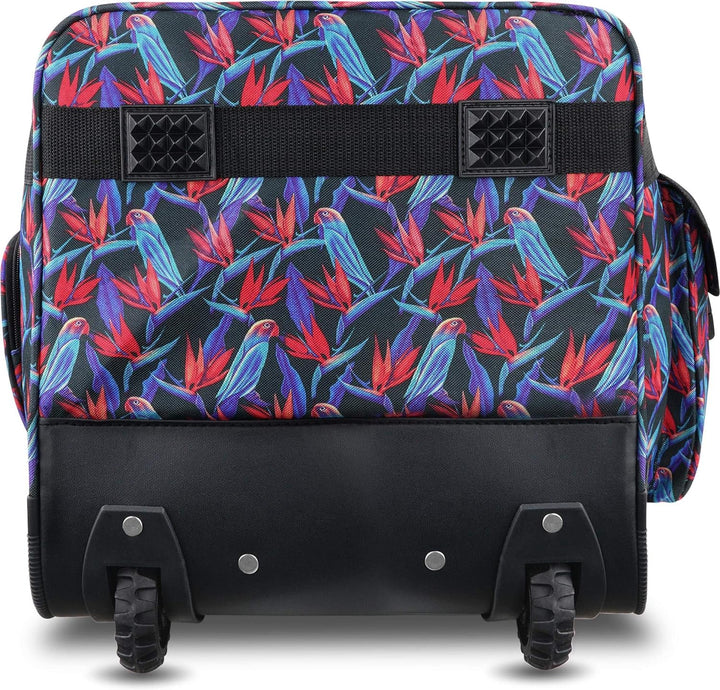 - grosse Öffnung durch umlaufenden Reissverschluss und versenkbarer Trolleygriff sowie grosse Laufrollen ermöglichen einen leichten Transport der Tasche