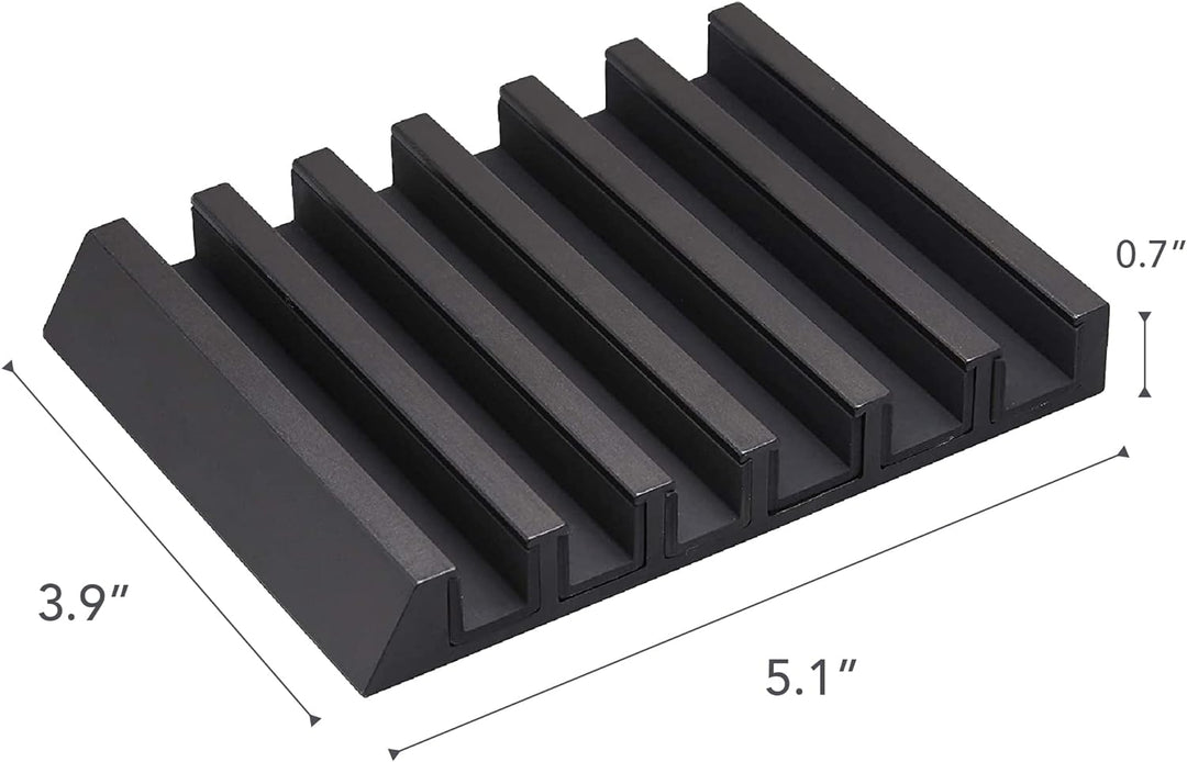 - Durchdachtes Design: Die ersten drei Reihen bieten Platz für Geräte bis zu 1,4 cm und die letzten 3,1 cm Dicke, sodass Smartphones oder Tablets unterschiedlicher Breite genau in den Ständer passen.