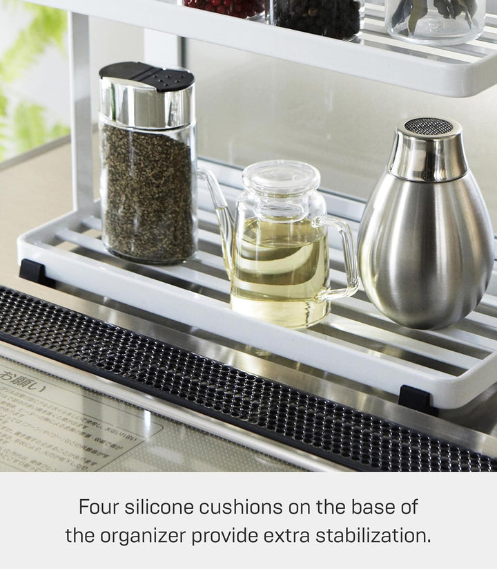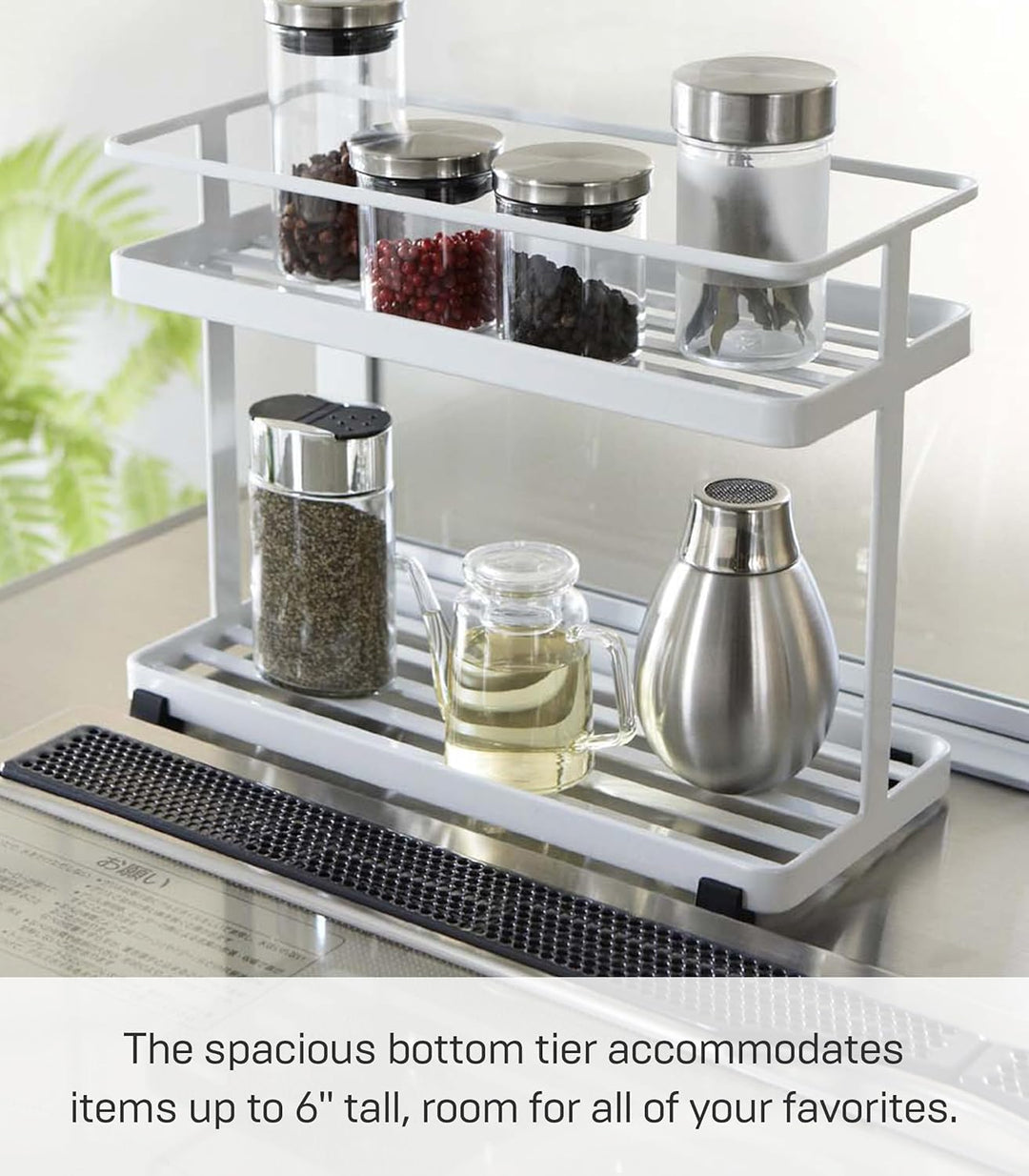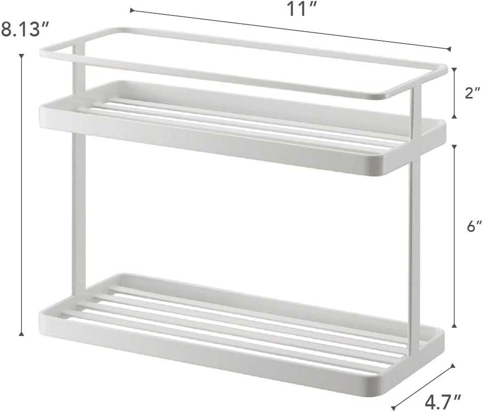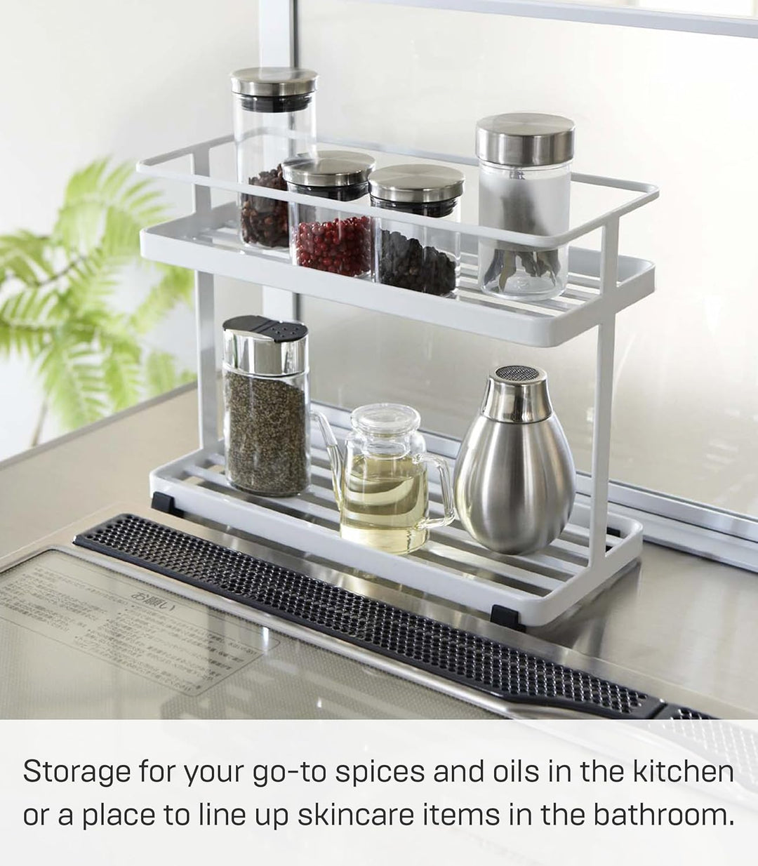 - Arbeitsplatten-Organizer: Dieses Regal ist eine grossartige Lösung, um bei Bedarf zusätzlichen Stauraum zu schaffen. Die untere Ebene verfügt über eine dünne Lippe, um zu verhindern, dass Gegenstände herausfallen. Die obere Ebene ist von einer
