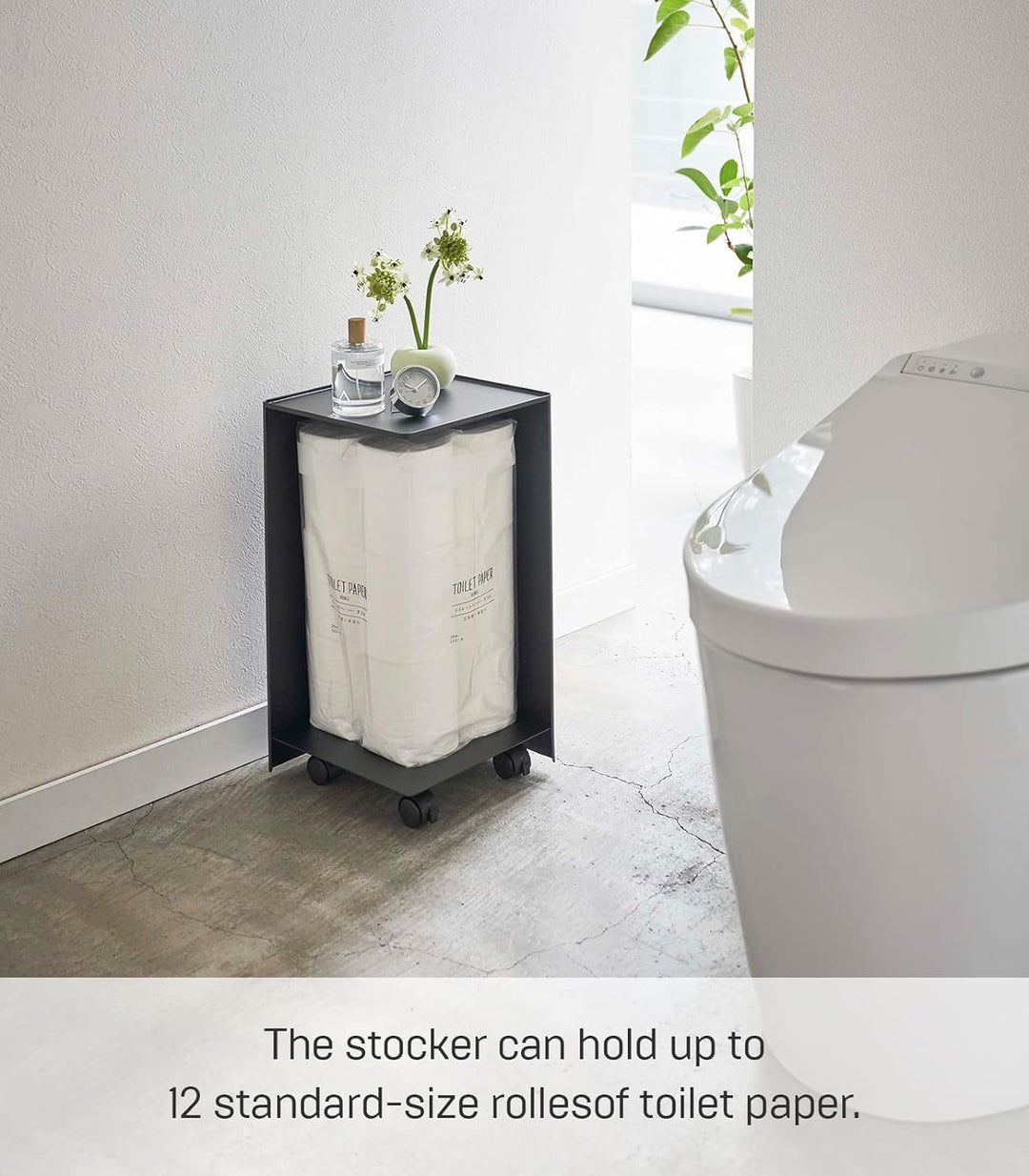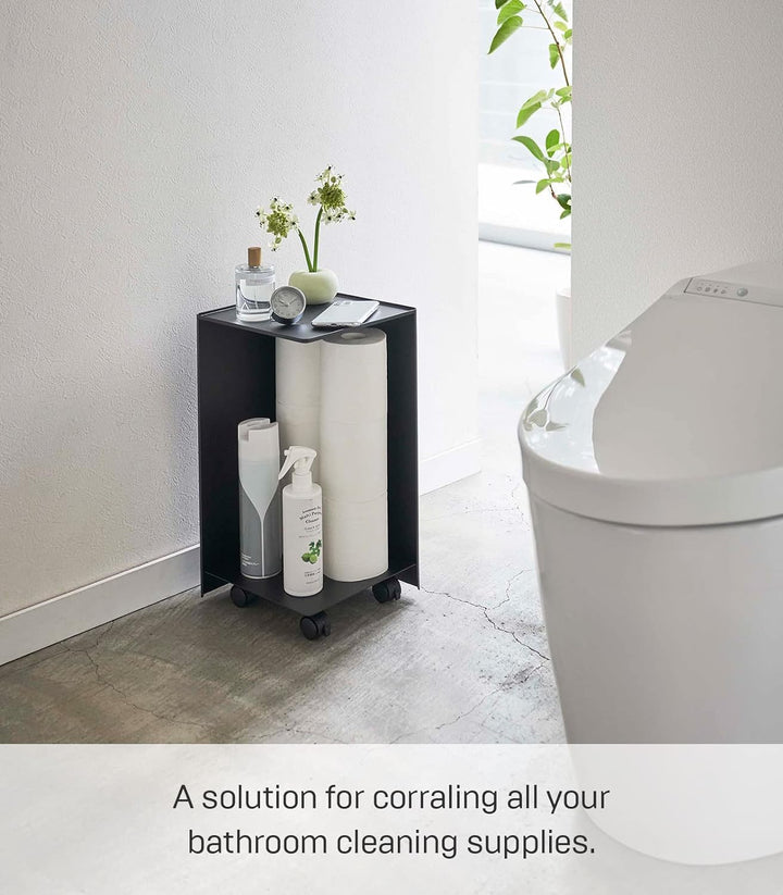- Verstecken Sie Ihr Toilettenzubehör geschickt mit diesem diskreten Rollwagen. Stellen Sie eine niedliche Pflanze oder eine andere Dekoration darauf und schmiegen Sie sie in die Ecke, um sie diskret zu verstauen.