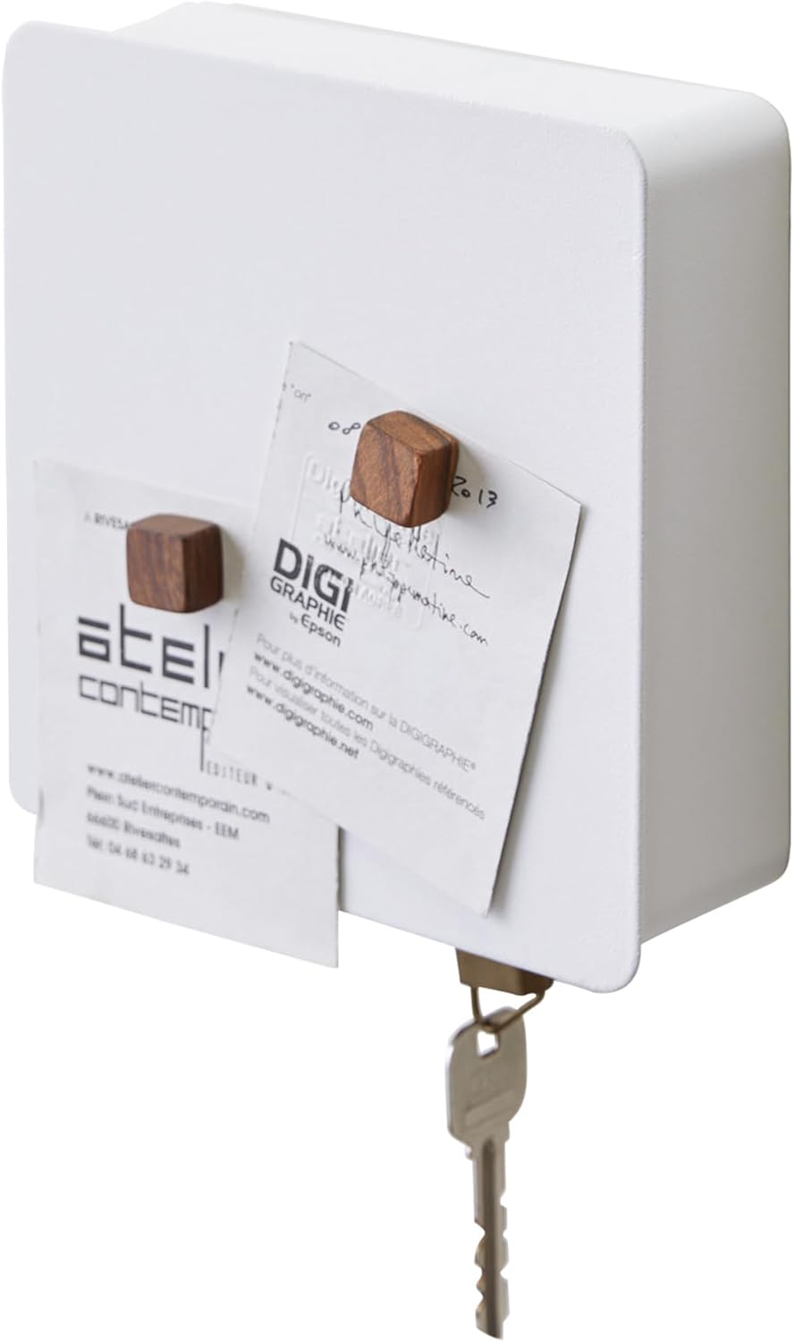 - Funktional: Dieser magnetische Schrank hat zwei Innenstege, die es ermöglichen, dass Schlüssel so nah oder so weit wie nötig an den Haken platziert werden können. An der Innentür befindet sich auch eine kleine Ablagefläche. Das leichte Design des