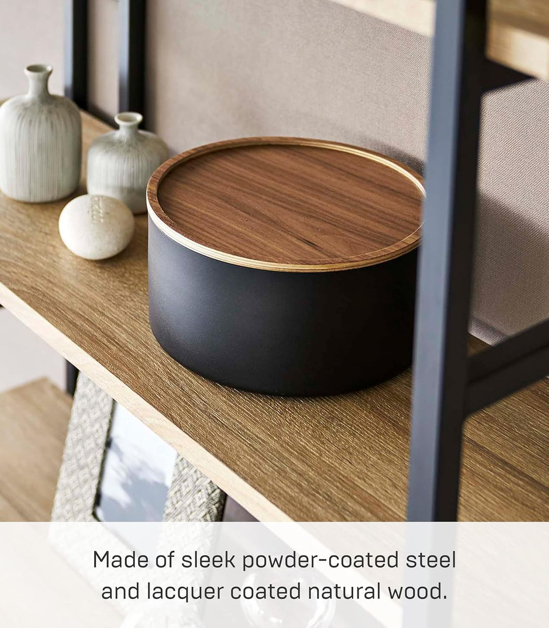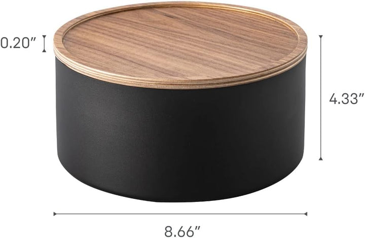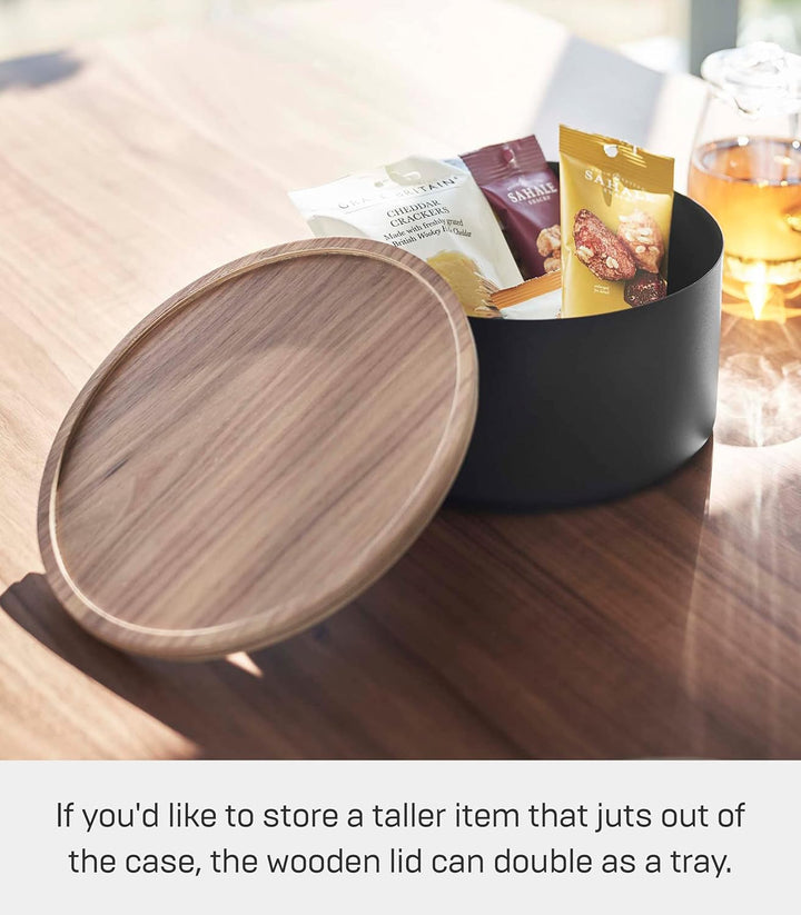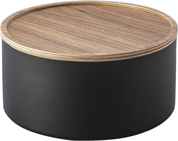 Yamazaki RIN 5802 Aufbewahrungsbehälter mit Deckel rund tief Schwarz, Schwarz
