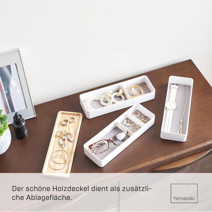 - Der schöne Holzdeckel dient als zusätzliche Ablagefläche.