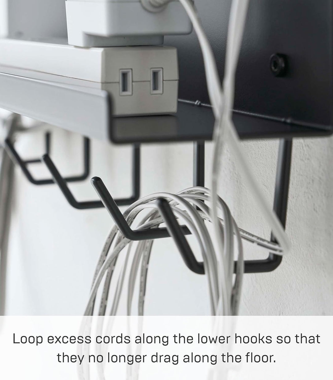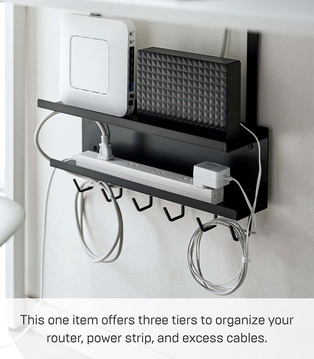 - Durchdachtes Design: Dieser Artikel bietet drei Ebenen Stauraum in einem kompakten Bereich, mit zwei Ebenen von Racks für Router, Modems und Steckdosen sowie stabilen Haken für Drähte und Kabel.