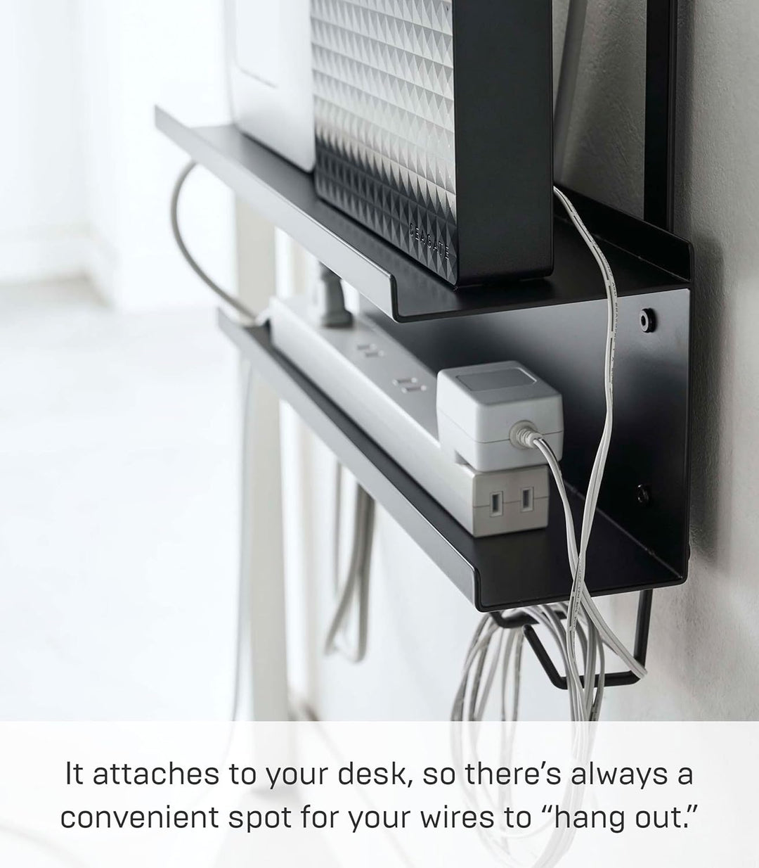 - Kabel- und Router-Aufbewahrungsregal: Passt diskret unter Ihrem Schreibtisch, dieses Aufbewahrungsregal