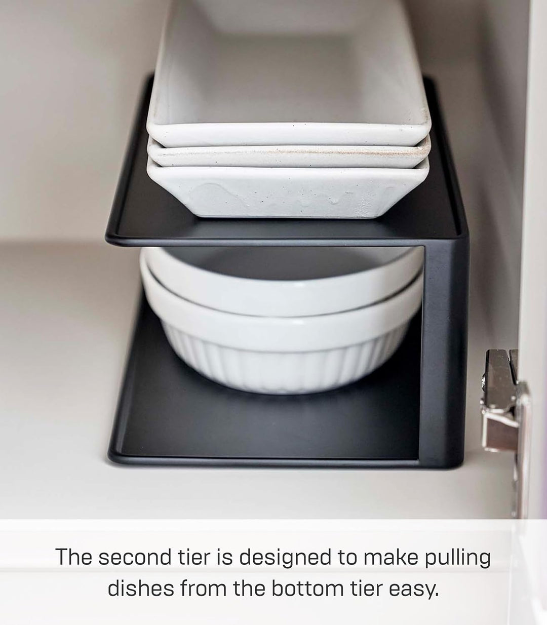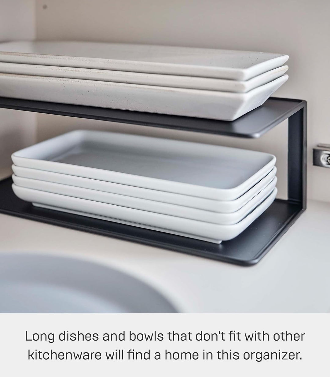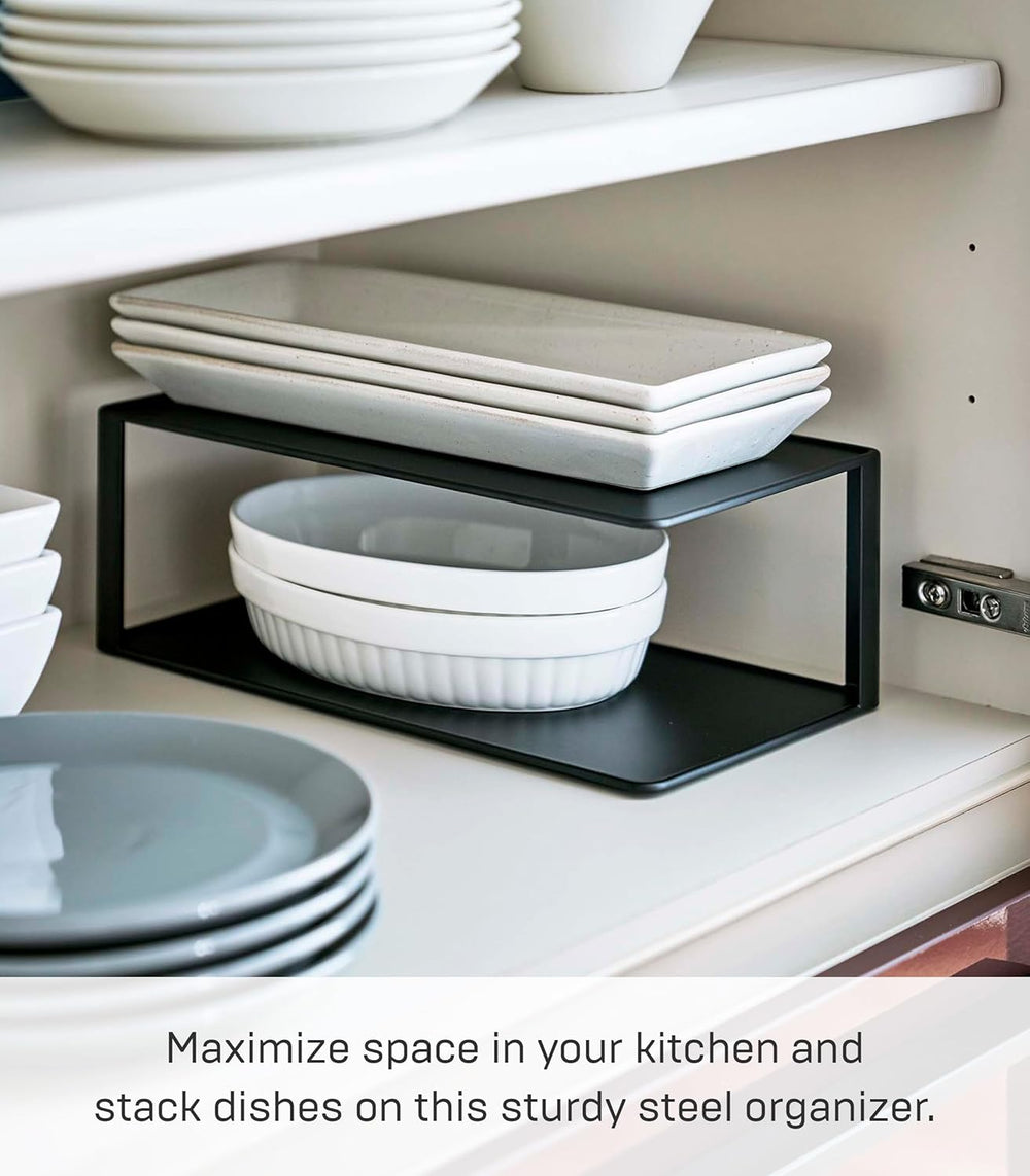 - Er schafft eine zusätzliche Ebene für die Aufbewahrung von Tellern, Untertassen oder Schüsseln, und seine robuste Konstruktion sorgt für eine sichere Aufbewahrung und Entnahme.