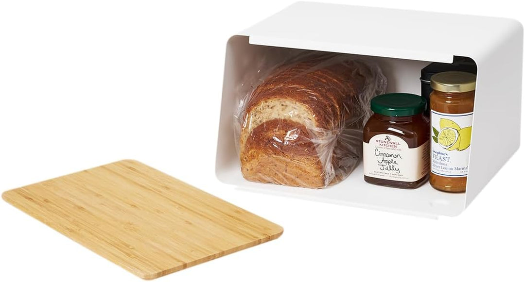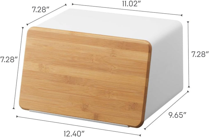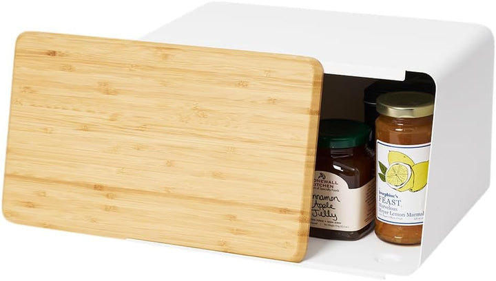- Dieser clevere Brotkasten besticht durch sein schönes und funktionales Design und die warme Kombination aus Bambus und Stahl.