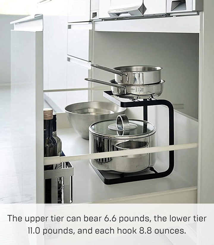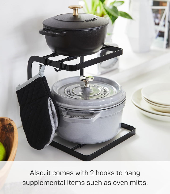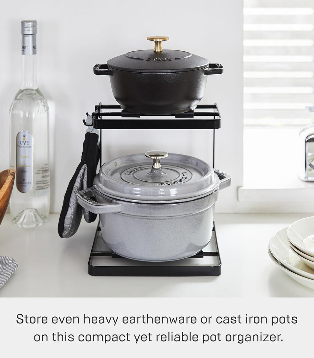 - Mit diesem freistehenden Topfgestell schaffen Sie im Handumdrehen zwei Ebenen auf der Arbeitsplatte. Perfekt für Sauciers, Suppentöpfe und holländische Öfen.