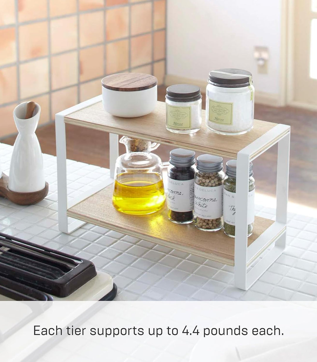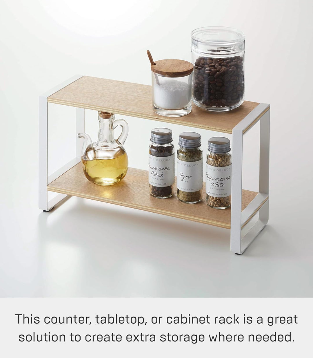 - Das klare Design dieses freistehenden Doppelregals sieht auf jedem Tisch oder jeder Arbeitsplatte frisch aus. Kann auch in Schränken verwendet werden, um den vertikalen Stauraum zu vergrössern.