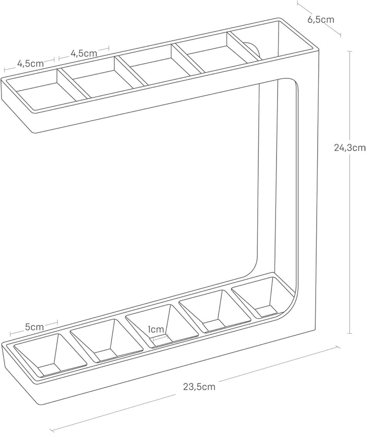 - Grösse und Gewicht: L 23, 5 x H 24, 3 x B 6, 5 cm, 1 kg