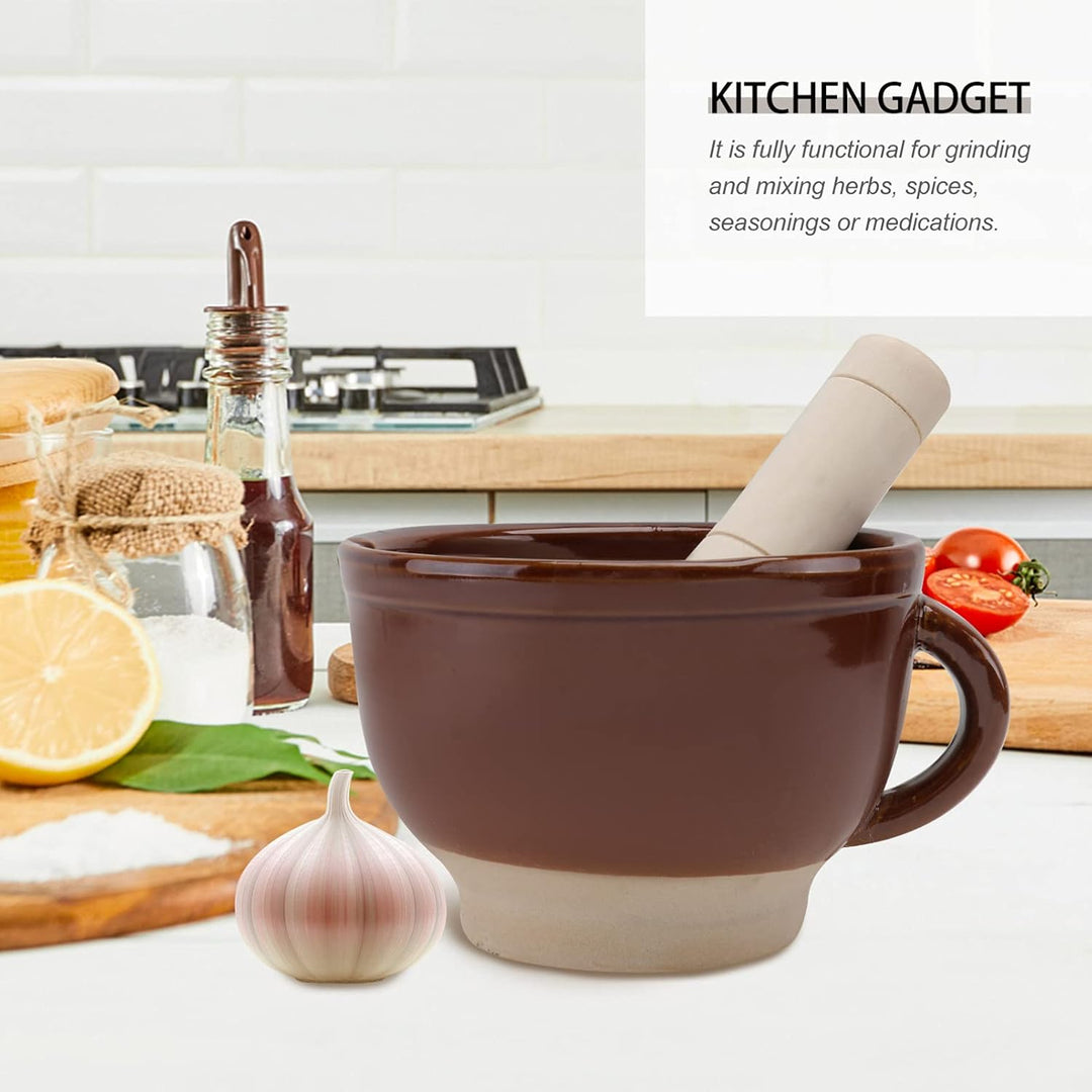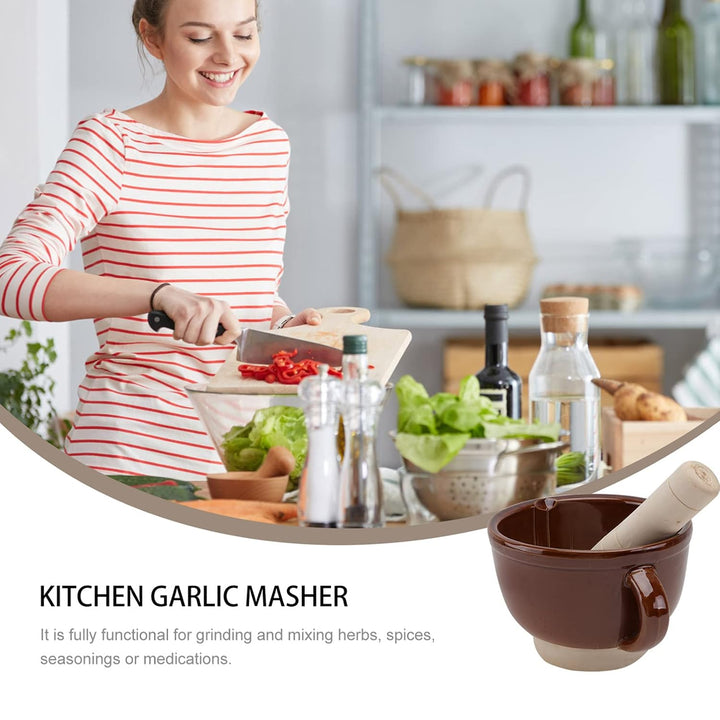 - Knoblauchzerkleinerer Schale Keramik Mörser Stössel Set Porzellan Kräuterschale Guacamole Schale Manuelle Knoblauchmühle Zerkleinerer Küchenhelfer für Gewürze Pfeffer Chili Ingwer