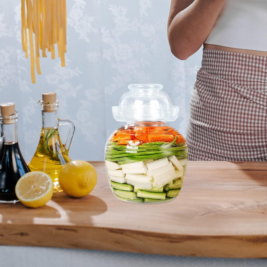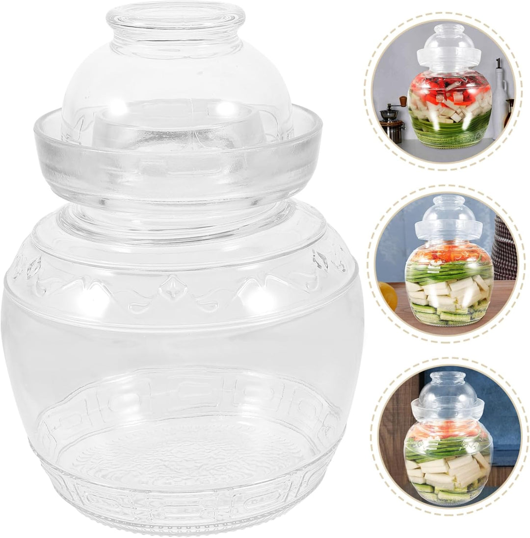 - Versiegelungsprinzip: Glas Kimchi- Container mit Glasdeckel, nur Wasser zum ?u?eren Waschbecken des JAR- Munds, um Siegelwirkung zu erreichen, müssen sich auf freuen, ohne sich um Luftunreinigungen zu sorgen. Wasserschloss wird jede Marinade von