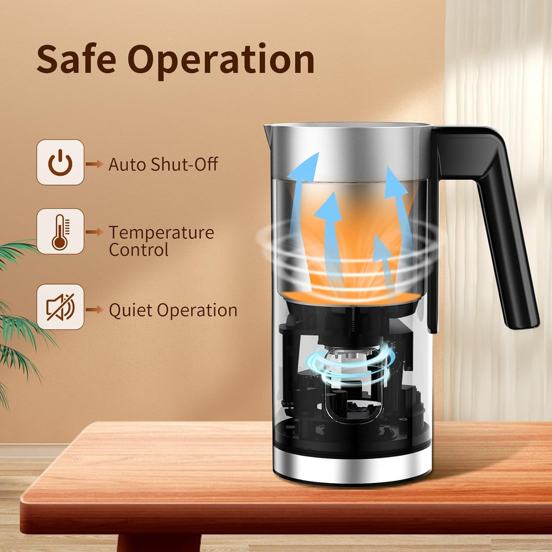 - Sicher und Zuverlässig: Wenn das Aufschäumen der Milch beendet ist, schaltet es sich automatisch ab, um Ihre Sicherheit zu gewährleisten und Energie zu sparen. Ausserdem arbeitet er leise, sodass Sie köstliche Mahlzeiten geniessen können, ohne durch