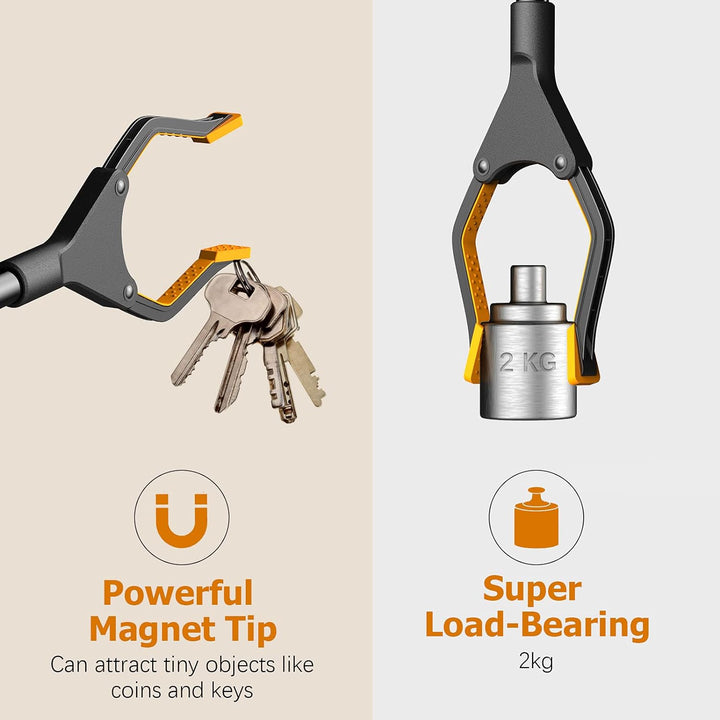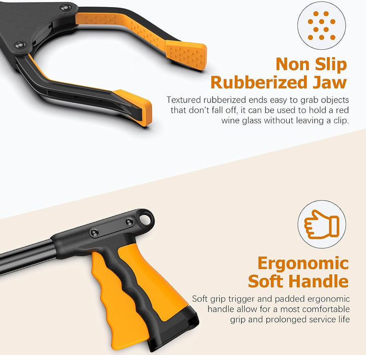 - 【Einfaches Greifen】 Der Grabber Selector ist mit einem ergonomischen Griff ausgestattet, der einen bequemen Halt bietet. Mit nur einem Knopfdruck kann der Kupplungs- und Auslösemechanismus schnell Objekte aus hohen, niedrigen, weiten und engen
