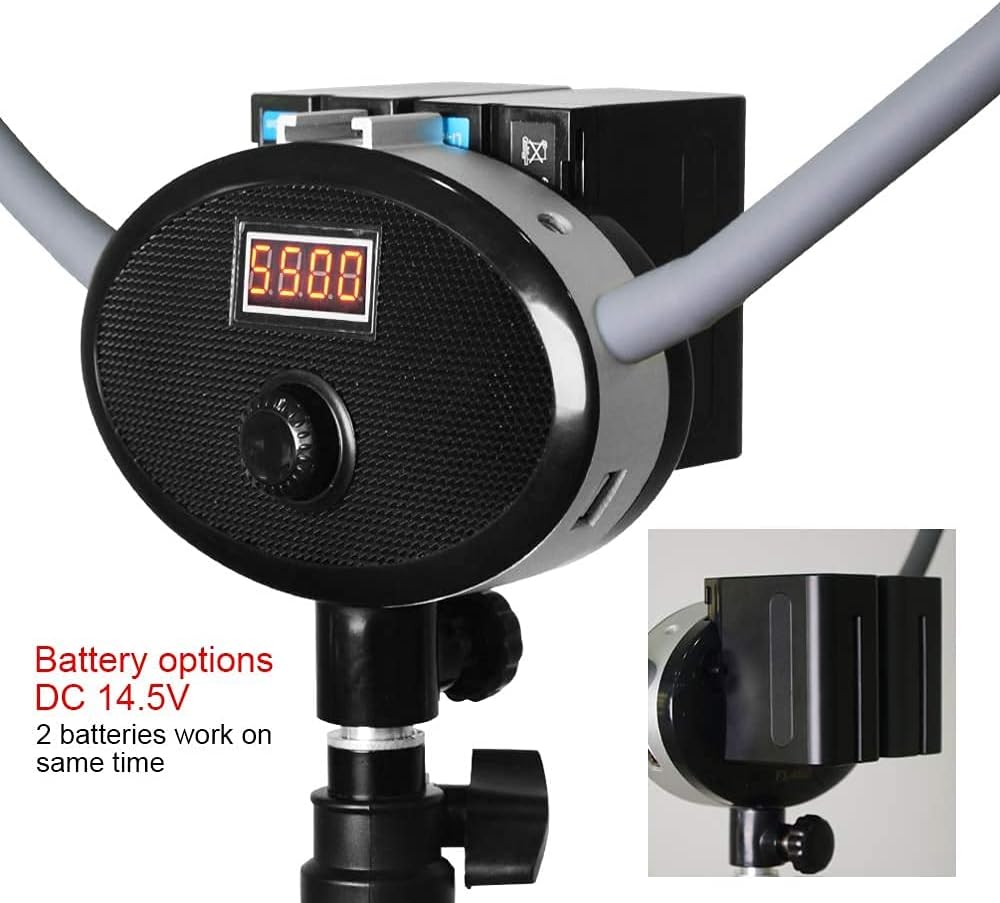 - Doppelarm-Licht + Seitenlicht-Ergänzung, doppeltes Seitenlicht-Ergänzung, um den Effekt von Multi-Light-Studios zu erzeugen, Helligkeit und Farbtemperatur genau anzupassen (drücken Sie den Knopf, um den Modus zu wechseln)