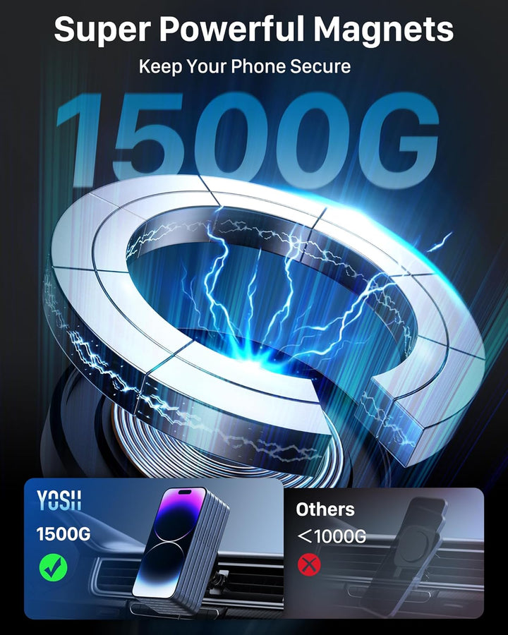- [Perfekt abgestimmt auf iPhone 16/15/14/13/12] Die YOSH Handyhalterung Auto wurde speziell für die iPhone-Serien 16, 15, 14, 13 & 12 (inkl. Pro, Pro Max, mini) entwickelt. Im Gegensatz zu herkömmlichen Handyhalterungen mit Magnet benötigt sie keine