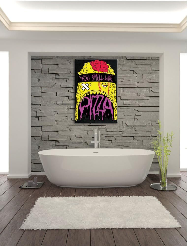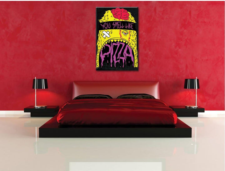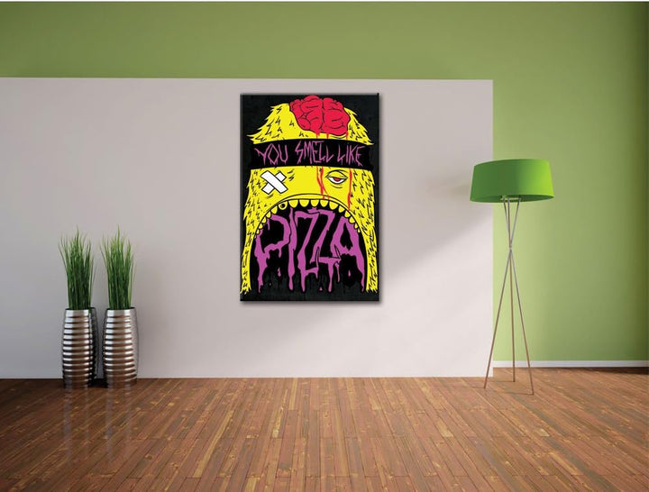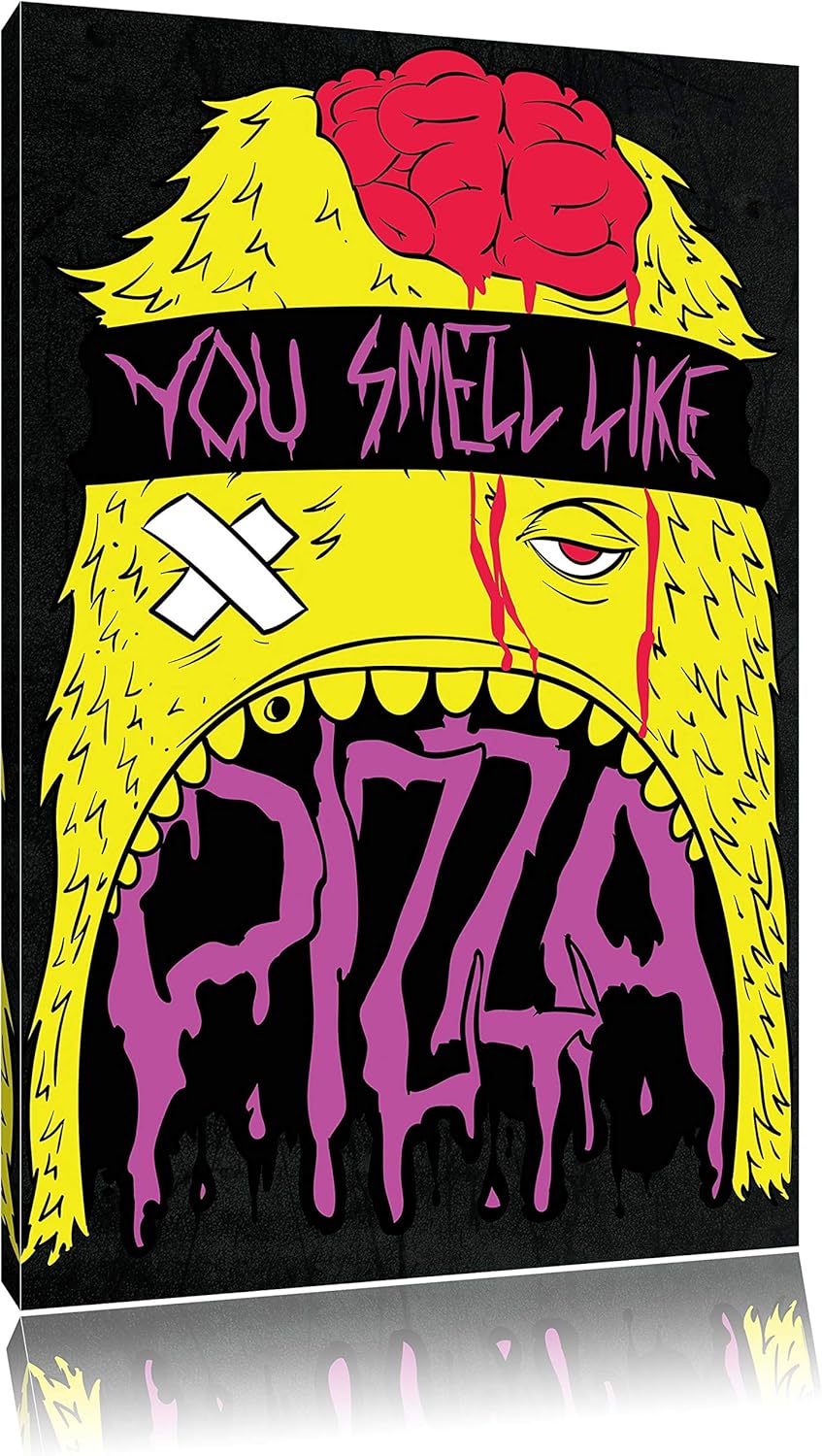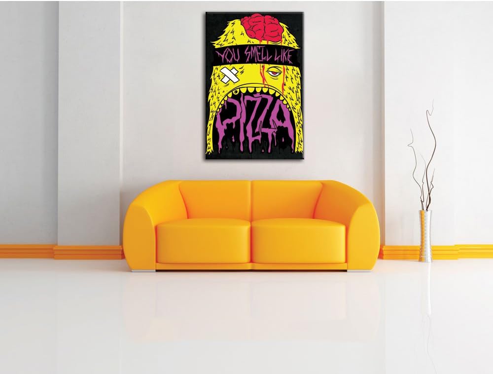 You smell like Pizza black Bild auf Leinwand, XXL riesige Bilder fertig gerahmt mit Keilrahmen, Kuns