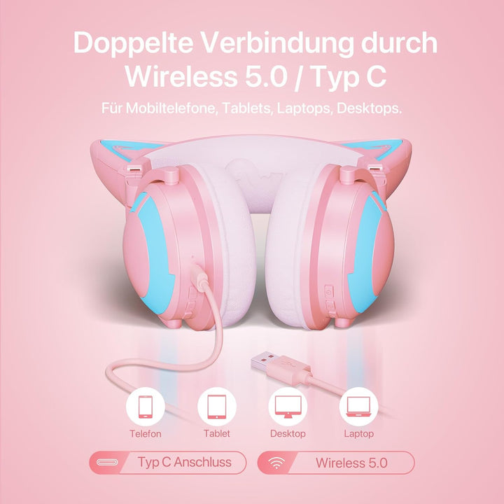 - 【App-Steuerung】YOWU Headset nimmt Dual-Lampen-Design an (Umrisslampe + Linienlampe), das Design der Lichtform an den Ohrenschützern ist die YOWU Logo-Form. Sie können die Lichtfarbe, den Lichtmodus und die Lichteffekte und Soundeffekte über die