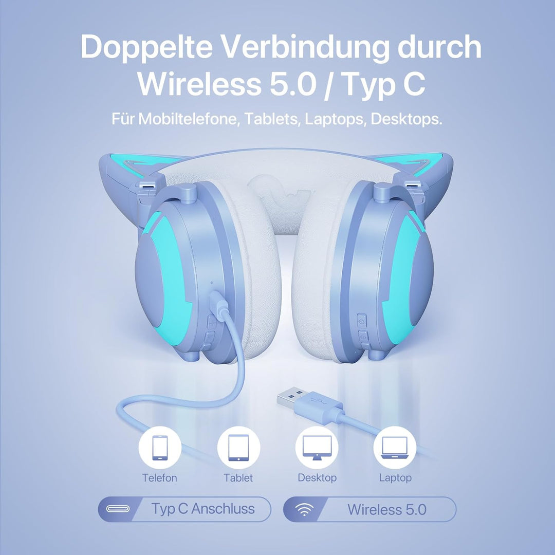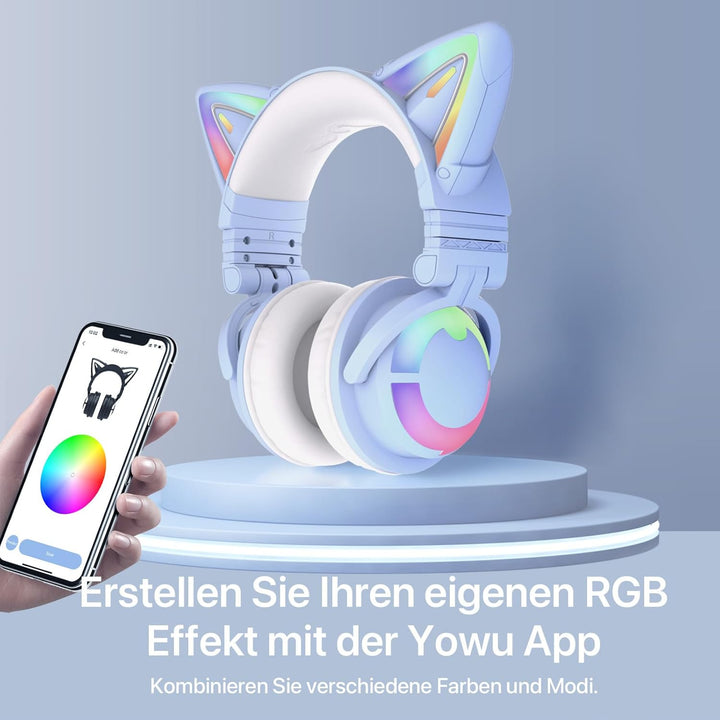 - 【App-Steuerung】 Das YOWU Kitty Headset hat seine einzigartige YOWU App, mit der Sie Millionen von Lichtfarben anpassen können, 4 verschiedene Lichteffekt-Modi und auch Soundeffekte für verschiedene Soundszenarien.