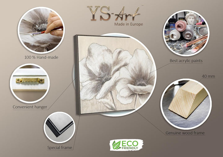 YS-Art XXL Abstrakt Acryl Gemälde auf Leinwand handgemalt Blumen II Wandbilder Wohnzimmer moderne Be