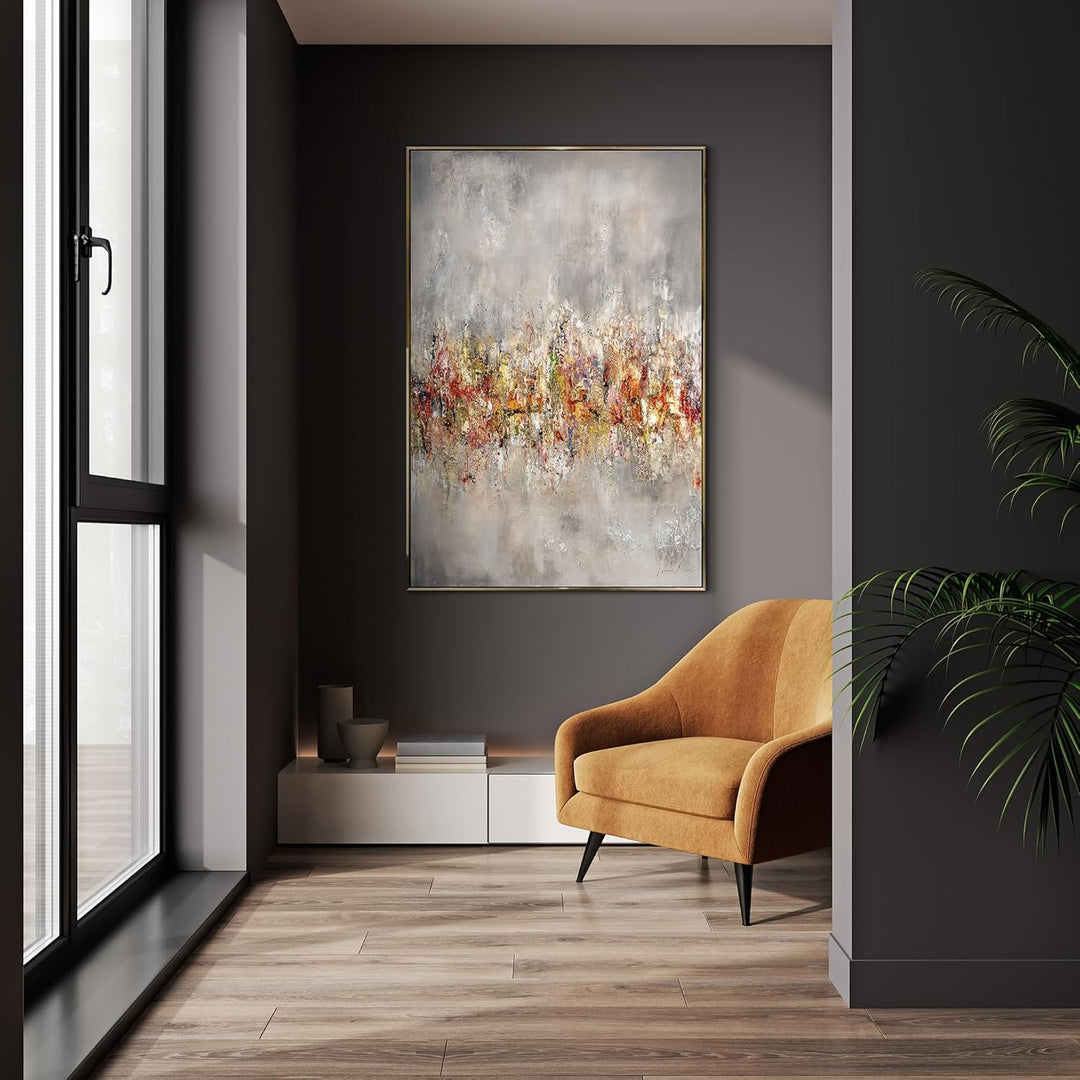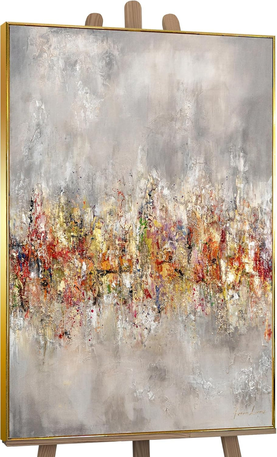 YS-Art XXL Abstrakt Acryl Gemälde auf Leinwand mit Rahmen heller Horizont handgemalte Wandbilder Woh
