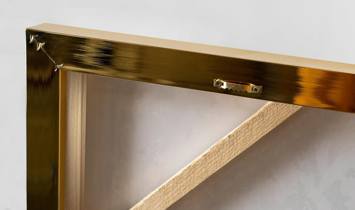 • Der Keilrahmen ist bereits mit 2 Metallverschlüssen ausgestattet - so können Sie das Gemälde direkt nach dem Auspacken aufhängen.