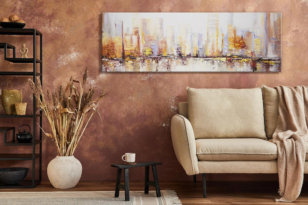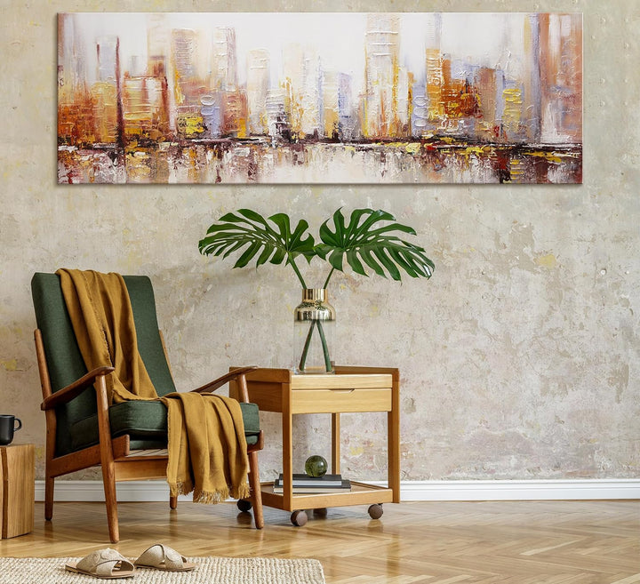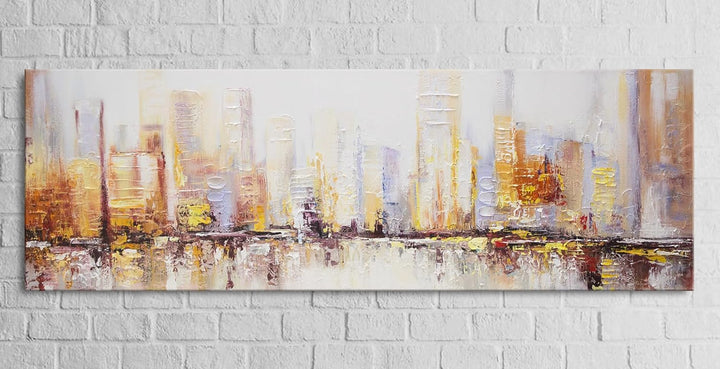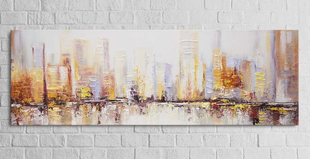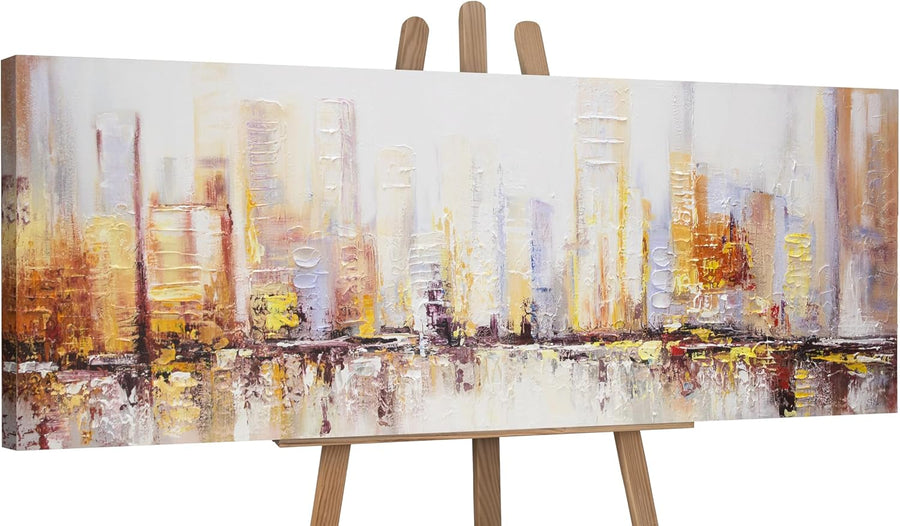 - Unser Gemälde Morgen’s in Megapolis, das in vielen frischen und sonnigen Tönen gemalt worden ist, passt hervorragend in Zimmern die dunkel und kalt sind. Das Gemälde einer Stadtlandschaft wird sowohl in Ihrem Wohnzimer als auch im Arbeitszimmer