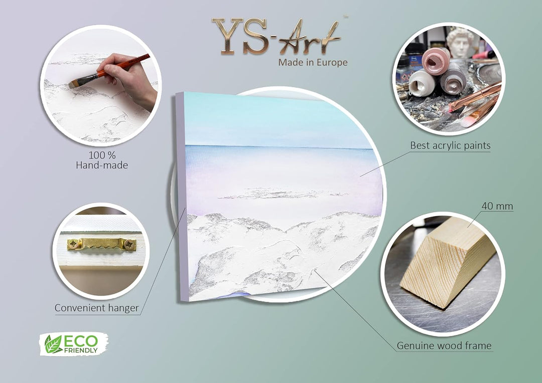 - Jedes Acrylgemälde auf Leinwand aus unserer YS Art Premium Serie wird vom Künstler signiert und ein Echtheitszertifikat wird beigelegt. Bei uns wird noch alles noch per Hand gemacht. Vom Anfertigen eines Keilrahmens, über das Spannen der hochwertigen