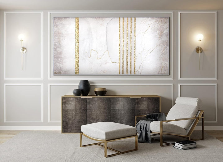 - Masse des Gemälde: Die Grösse des Gemäldes beträgt 140 x 70 cm. Die Dicke des Keilrahmens beträgt 35 mm. Für das Gemälde wurde eine hochwertige Leinwand mit exklusiven Acrylfarben verwendet. Das Weiteren wird das Gemälde in einem Rahmen