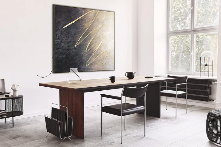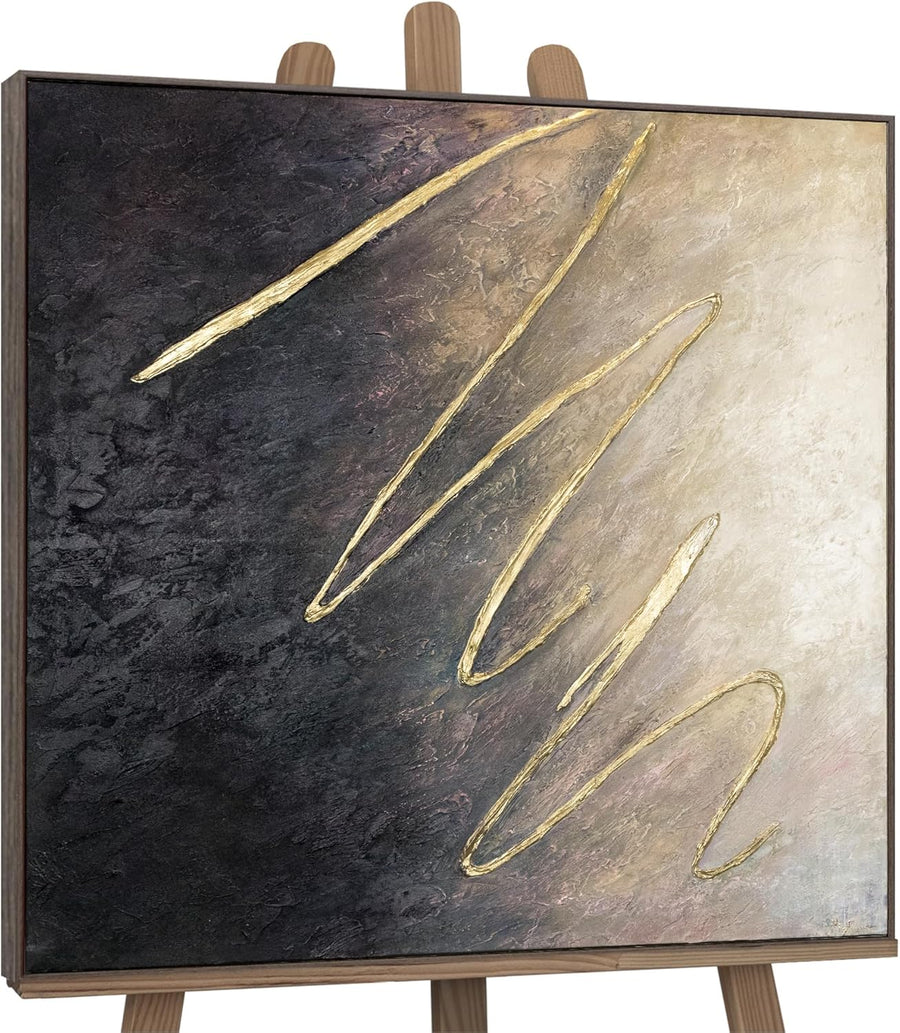 - Masse des Gemälde: Die Grösse des Gemäldes beträgt 100 x 100 cm. Die Dicke des Keilrahmens beträgt 35 mm. Für das Gemälde wurde eine hochwertige Leinwand mit exklusiven Acrylfarben verwendet. Das Weiteren wird das Gemälde in einem Rahmen