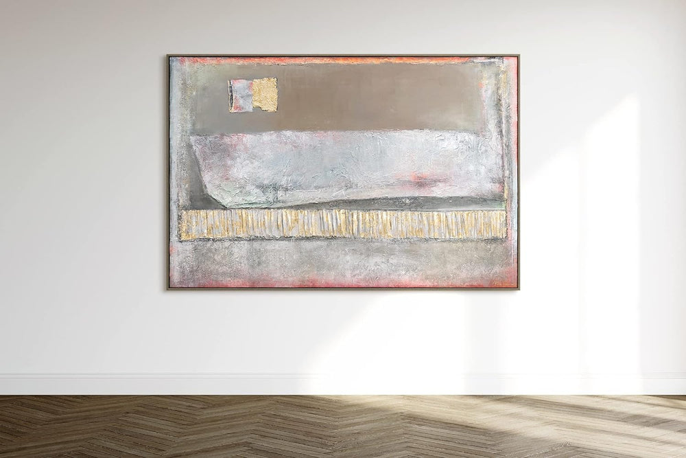 - L'abstraction moderne est peu comprise par l'audience, mais juste ici l'on découvre sa touche de supériorité sur les autres types de peinture d'intérieur. Modérément luxueuse, texturée, placée dans un cadre gris élégant: tout ça c'est sur