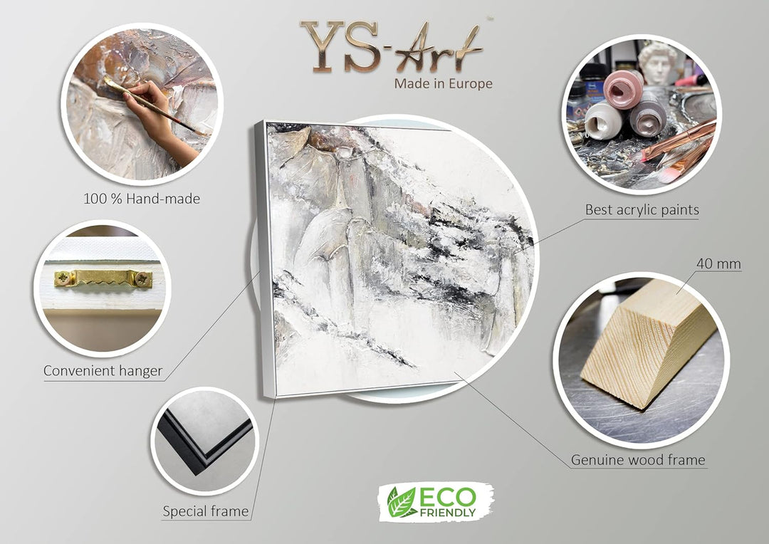- Jedes Acrylgemälde auf Leinwand aus unserer YS Art Premium Serie wird vom Künstler signiert und ein Echtheitszertifikat wird beigelegt. Bei uns wird noch alles noch per Hand gemacht. Vom Anfertigen eines Keilrahmens, über das Spannen der hochwertigen