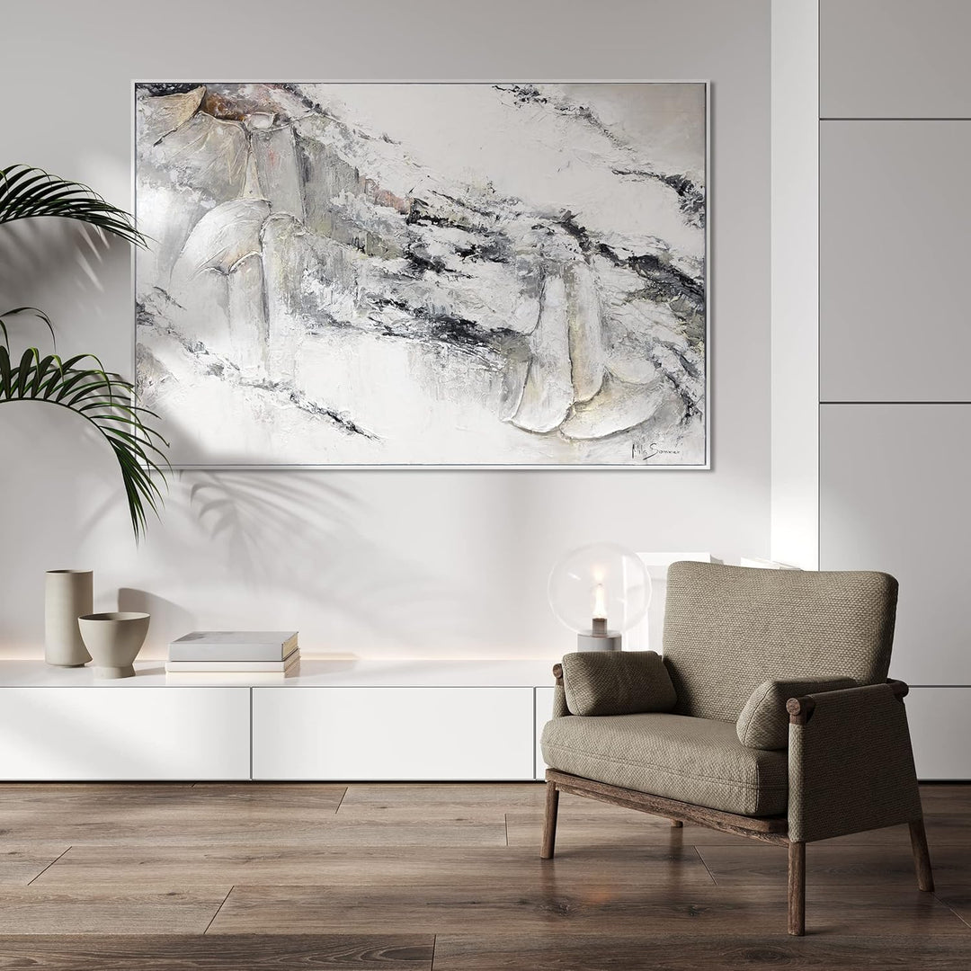 - Textur und Dynamik, ein Minimum an Details und ein Sinn für Stil, all dies wird im Gemälde "Renaissance" der Kollektion Deluxe erfolgreich kombiniert. Der stilvolle weisse Rahmen fügt dem Gemälde, Raffinesse und Luxus hinzu.