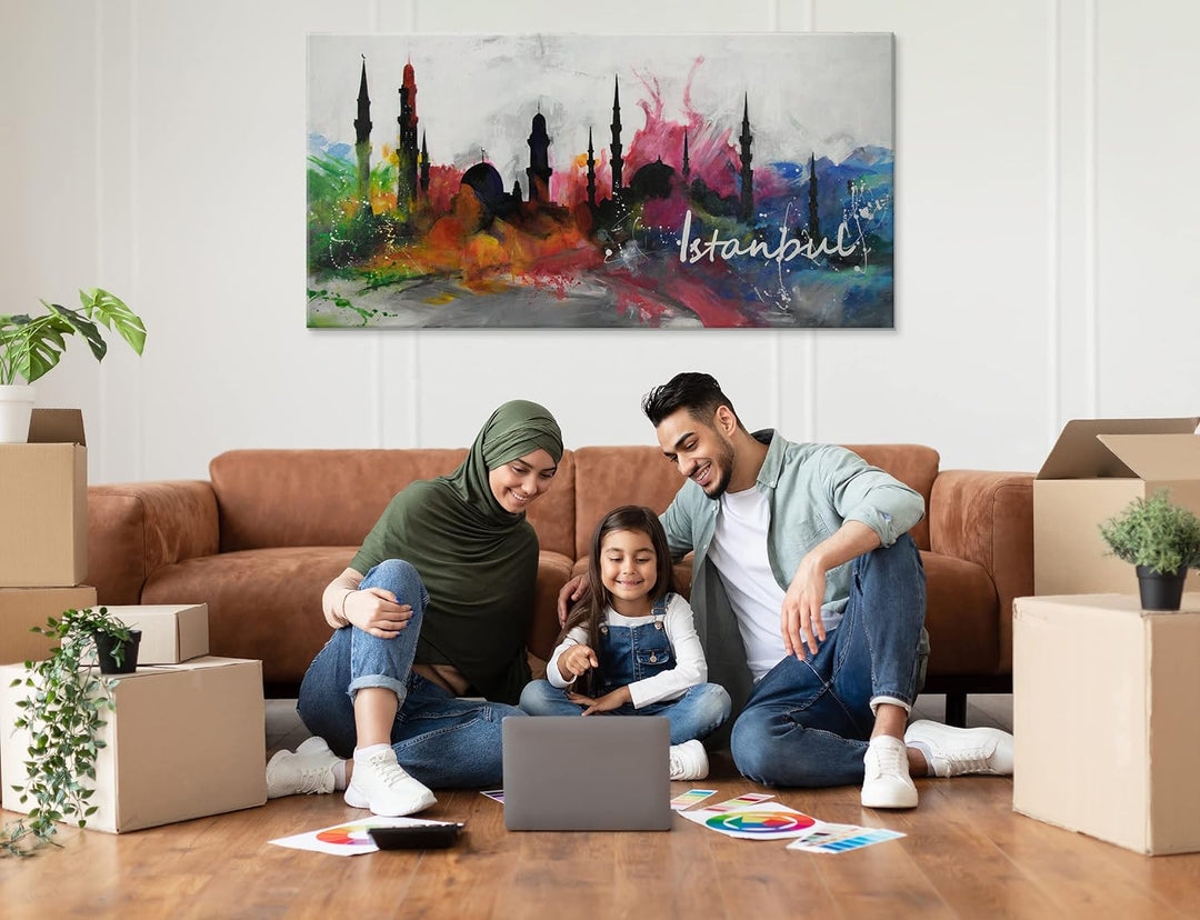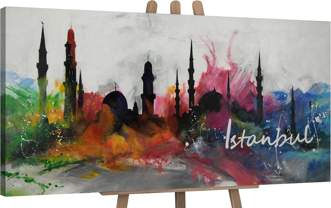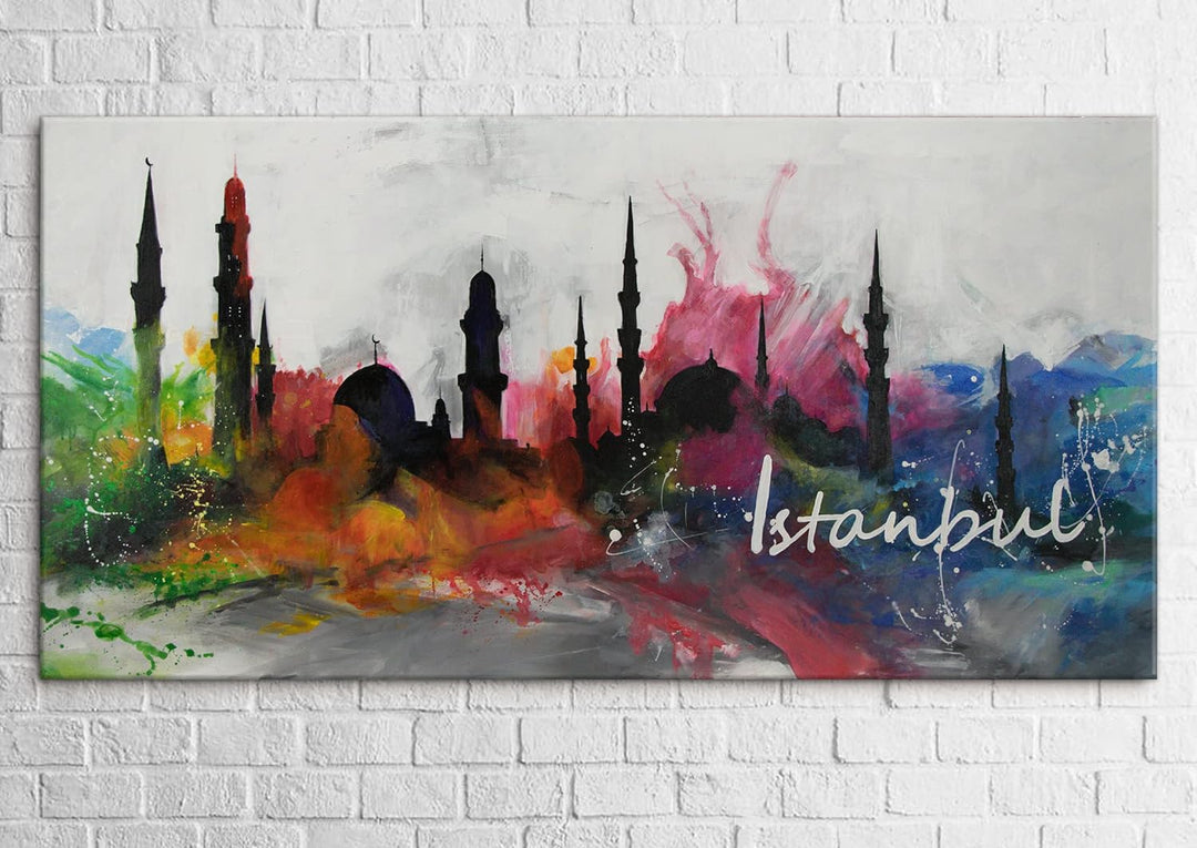 YS-Art Abstrakt Design Acryl Gemälde auf Leinwand Istanbul handgemalt Wandbilder Wohnzimmer modern W