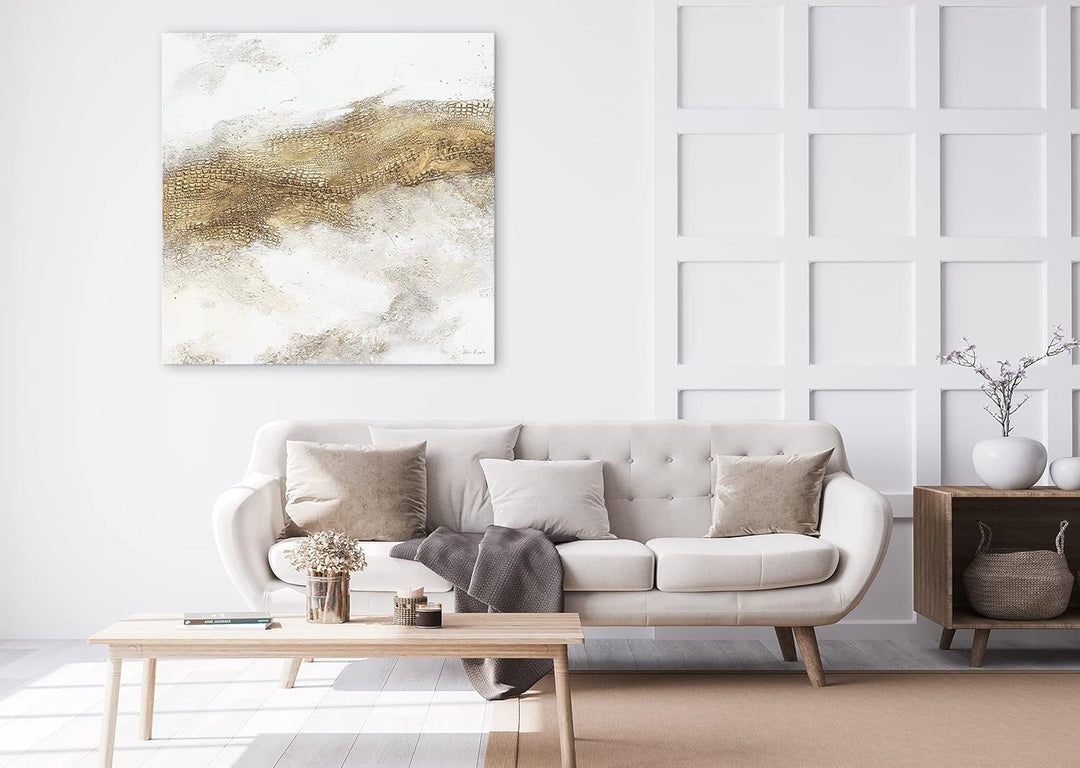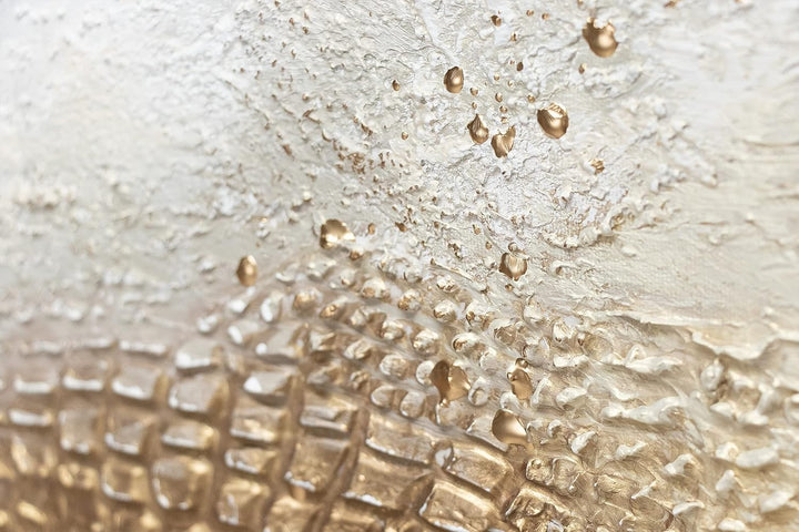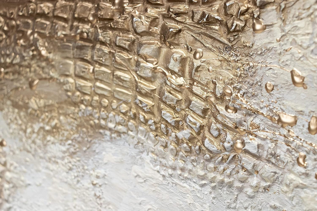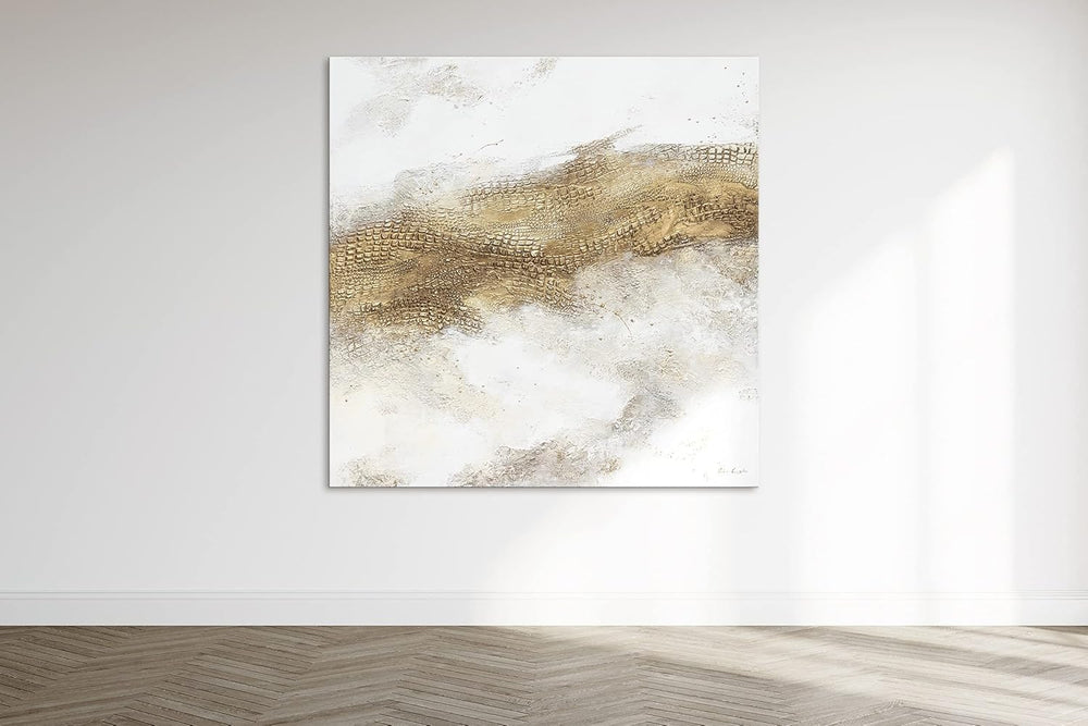 - Handgemaltes Abstraktions Gemälde der exklusiven Serie Trend in der Grösse 100 × 100 cm "April". In hellen gemalt und mit Blattgold veredelt.