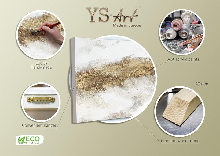 - Alle Komponenten werden komplett von Hand gefertigt. Vom Spannen der Leinwand auf den Keilrahmen bis hin zum Malen und dem sicheren Verpacken des Gemäldes.