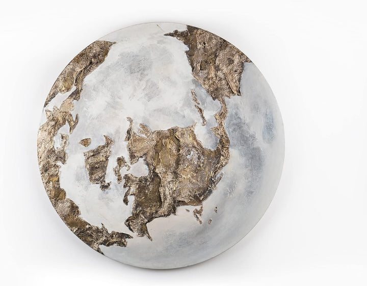 YS-Art Abstrakt Fluoreszierendes leuchtendes Acryl 3D Gemälde auf runder Leinwand Goldene Erde handg