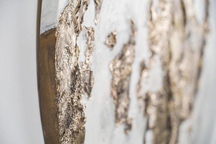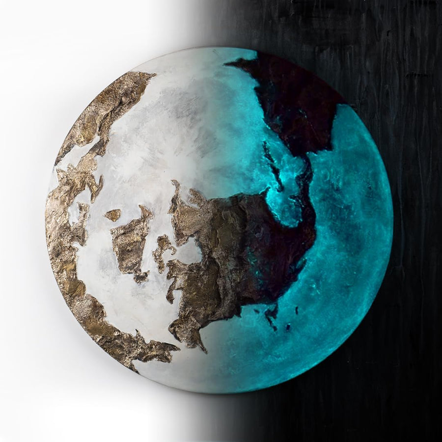 YS-Art Abstrakt Fluoreszierendes leuchtendes Acryl 3D Gemälde auf runder Leinwand Goldene Erde handg