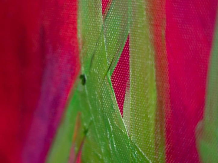 - Gemalt mit Acryl- und Fluoreszierenden Farben, die Umweltfreundlich sind. Wir spannen die Leinwand auf einen Keilrahmen aus Naturholz. Da das Gemälde für viele Jahre erhalten bleiben soll, wir die die Oberfläche mit einem Acryllack auf Wasserbasis,