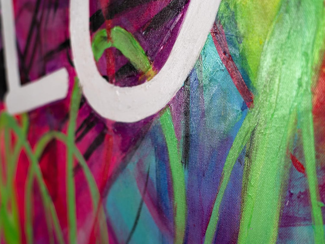 - Gemalt mit Acryl- und Fluoreszierenden Farben, die Umweltfreundlich sind. Wir spannen die Leinwand auf einen Keilrahmen aus Naturholz. Da das Gemälde für viele Jahre erhalten bleiben soll, wir die die Oberfläche mit einem Acryllack auf Wasserbasis,