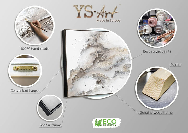 - Jedes Acrylgemälde auf Leinwand aus unserer YS Art Premium Serie wird vom Künstler signiert und ein Echtheitszertifikat wird beigelegt. Bei uns wird noch alles noch per Hand gemacht. Vom Anfertigen eines Keilrahmens, über das Spannen der hochwertigen