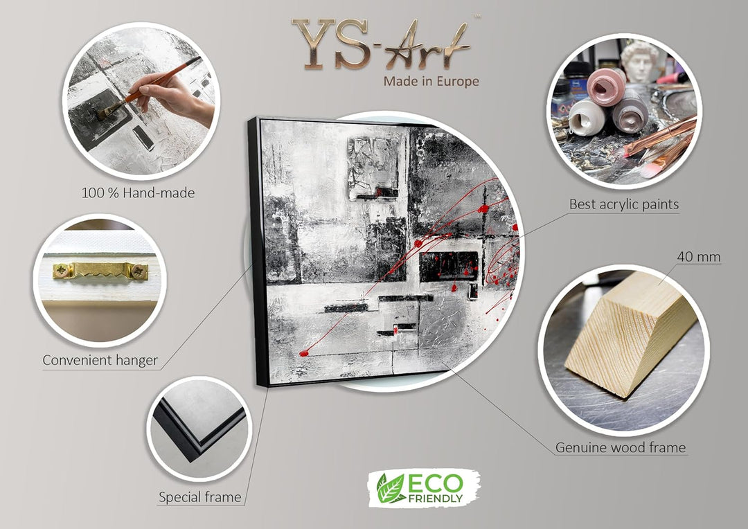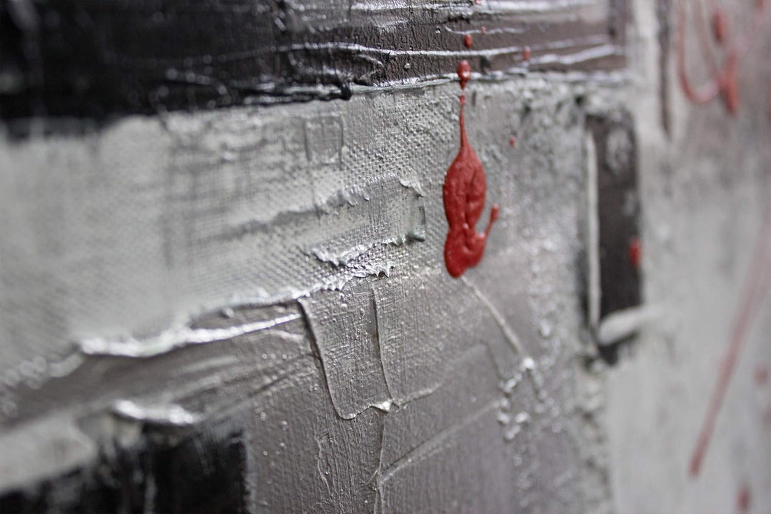 YS-Art XXL Abstrakt Acryl Gemälde auf Leinwand Courage handgemalt Wandbilder schwarz weiss grau rot