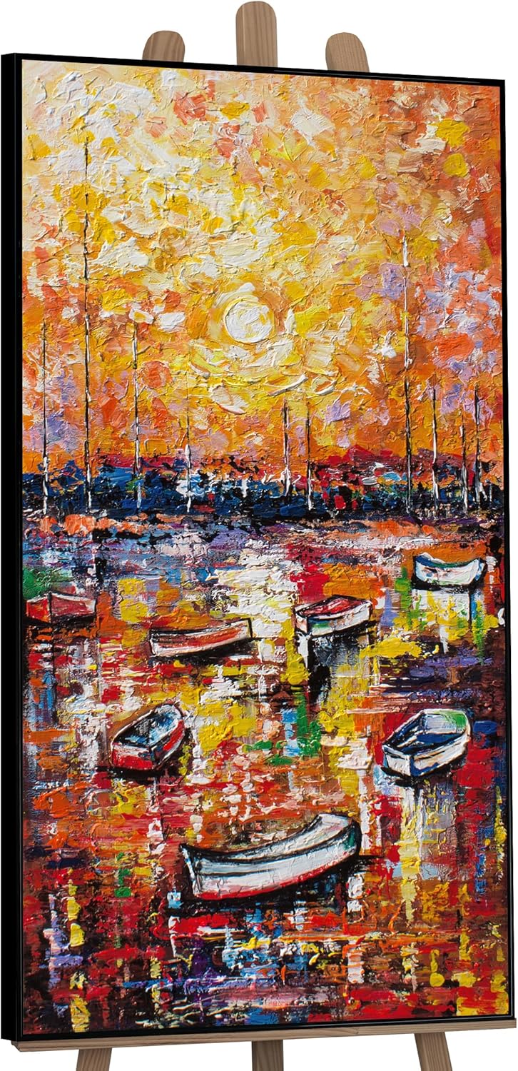 YS-Art XXL Abstrakt Acryl Gemälde auf Leinwand Hafen handgemalt Wandbilder Wohnzimmer modernes Desig
