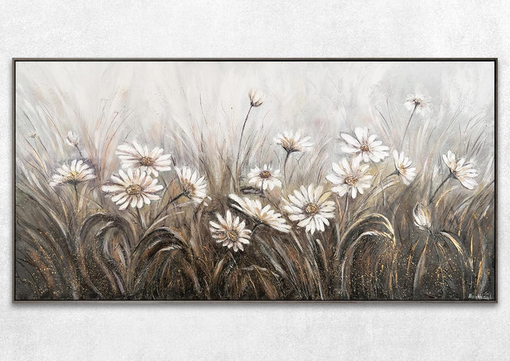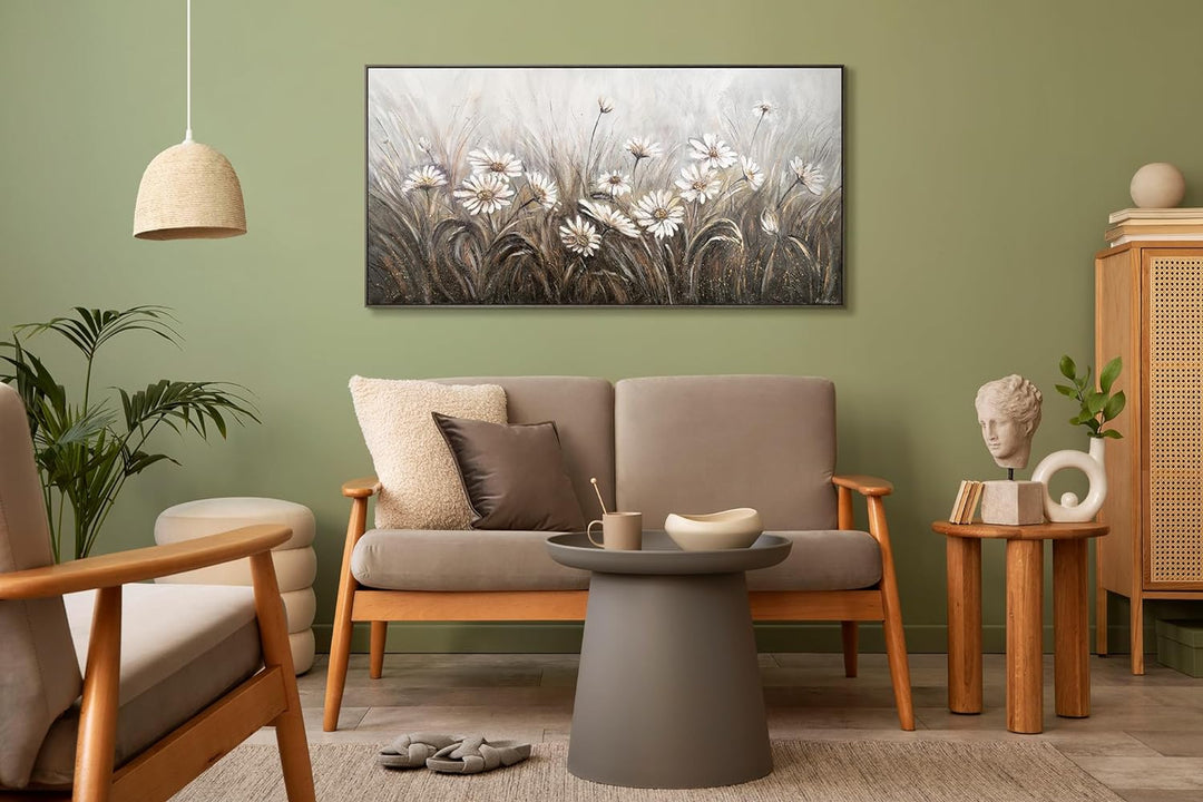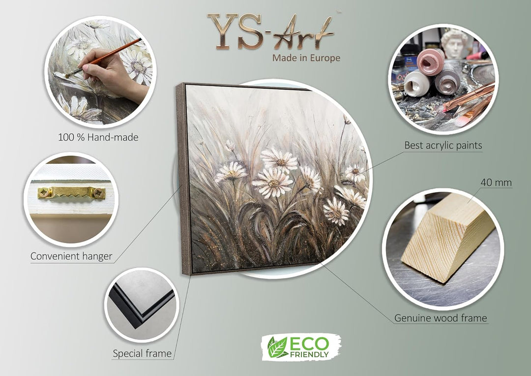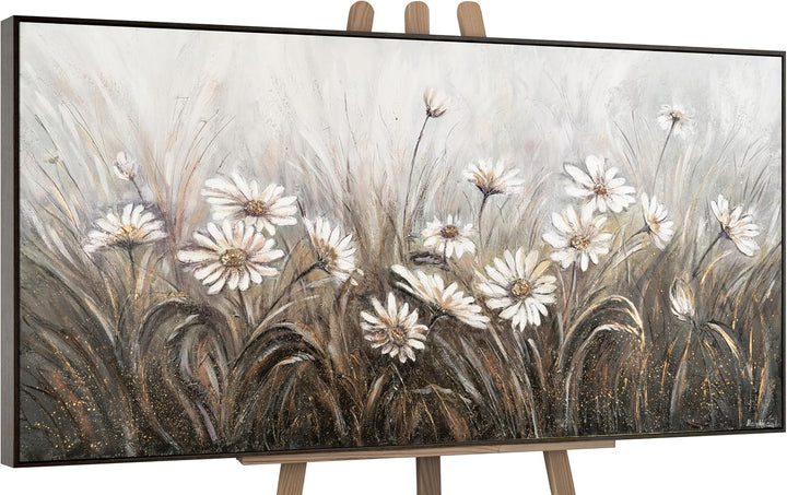 YS-Art Abstrakt Stil Acryl Gemälde auf Leinwand Gänseblümchen handgemalt Wandbilder Wohnzimmer moder