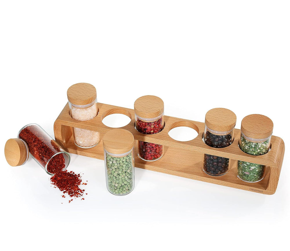 - ANSPRECHENDES DESIGN – Der Gewürzständer im natürlichen Buchenlook passt in jede Küche und ist ein besonderer hingucker