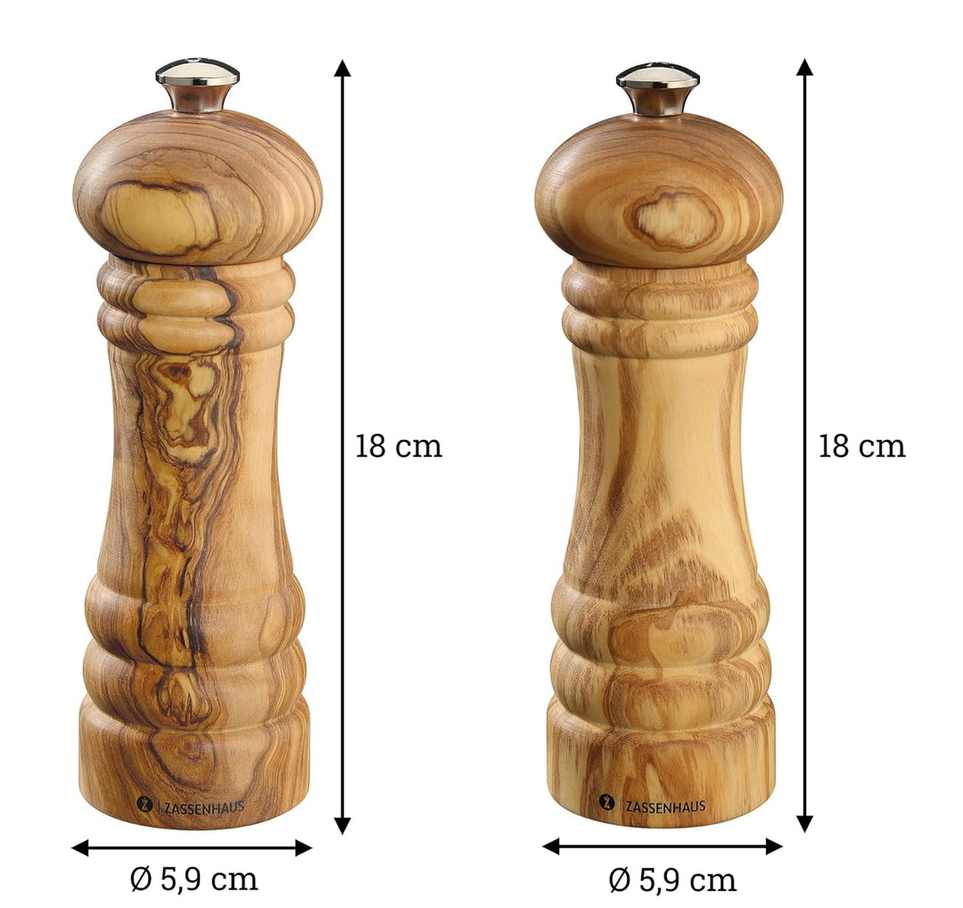 - MÜHLENSET – Das Mühlenset Berlin Olivenholz, bestehend aus Pfeffer- und Salzmühle 18cm, sowie einem passenden Olivenholz Untersetzer, ist das perfekte Geschenkset für Weihnachten, zum