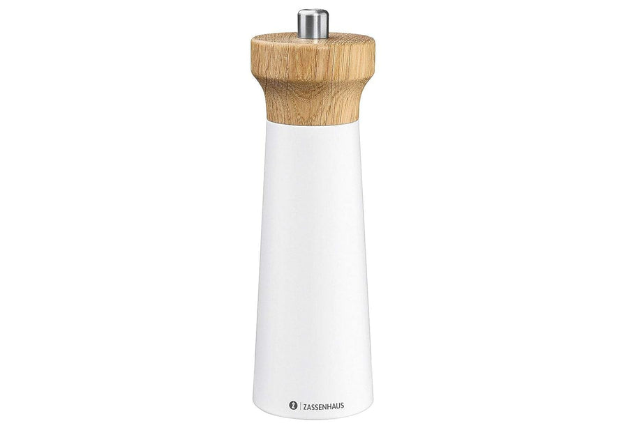 Zassenhaus Pfeffermühle Holz WESTERLAND | weiss/Buchenholz | Mühlenkopf aus Eichenholz | mit stufenl